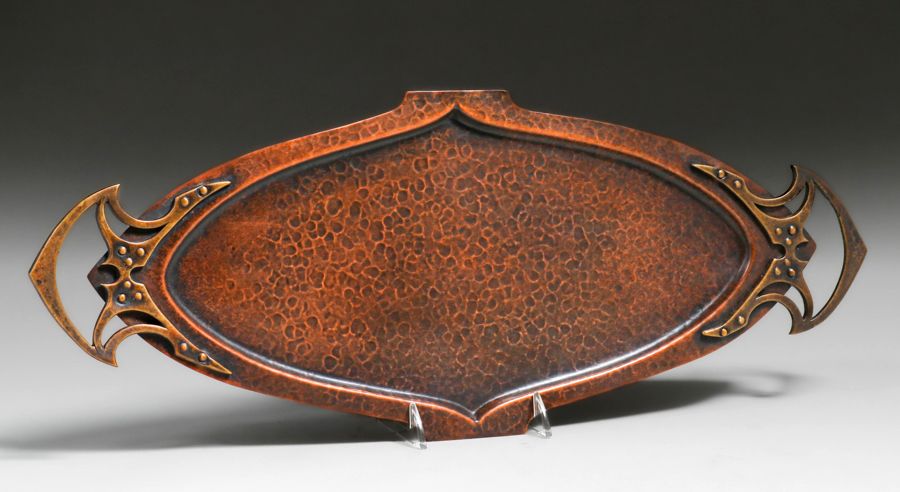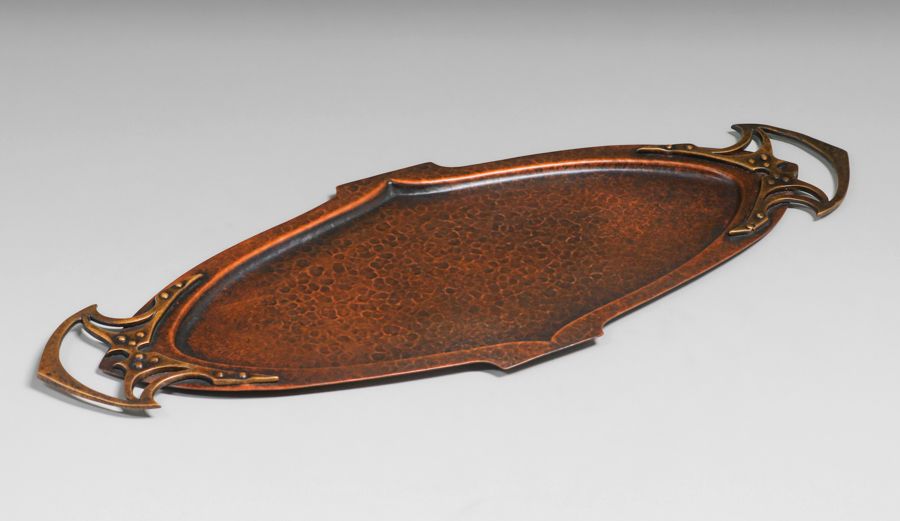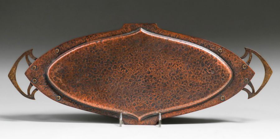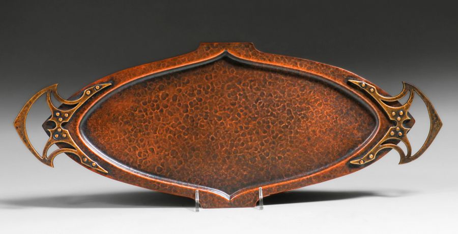 - WMF German Hammered Copper & Brass Serving Tray c1905