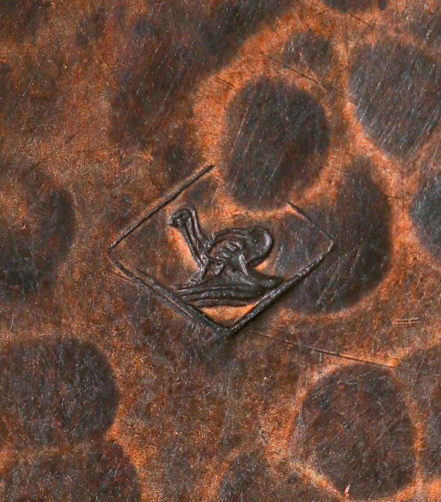 WMF German Hammered Copper & Brass Serving Tray c1905. Signed. Excellent new patina. 17 3/8"w x 6.75" SOLD