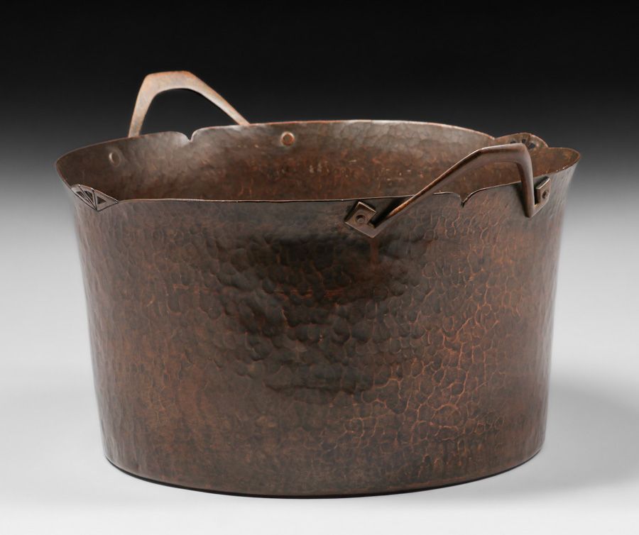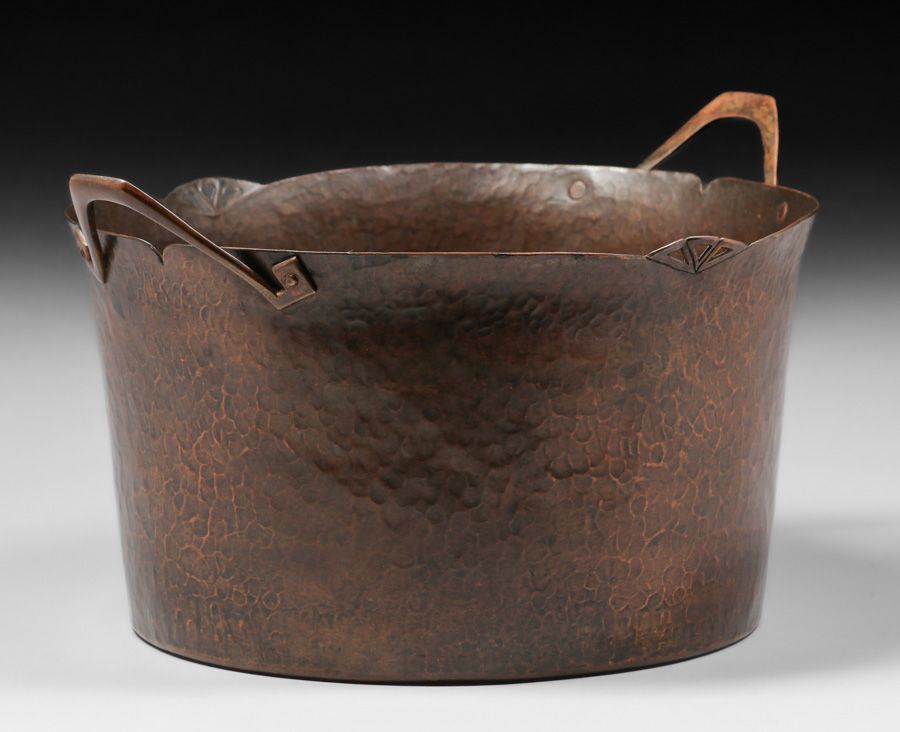 WMF - German Hammered Copper & Brass Two-Handled Jardiniere c1905. Unsigned. Excellent new patina. 14"w x 8"h SOLD
