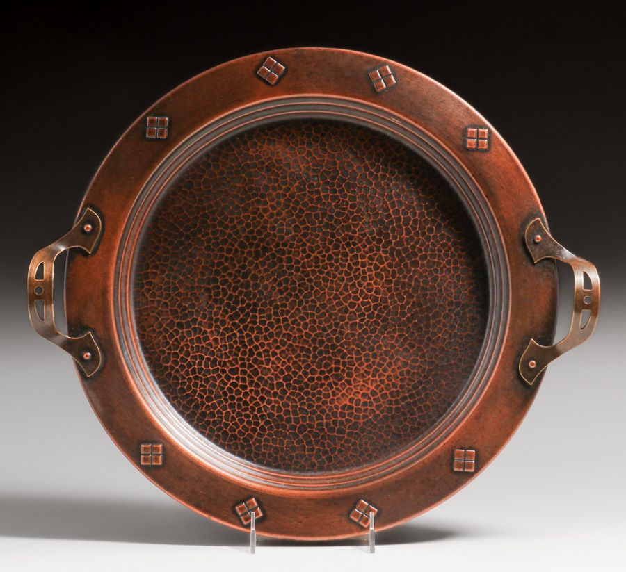 WMF - German Hammered Copper & Brass Two-Handled Tray c1905. Unsigned. Excellent new patina. 17 5/8"w x 15.5"d SOLD