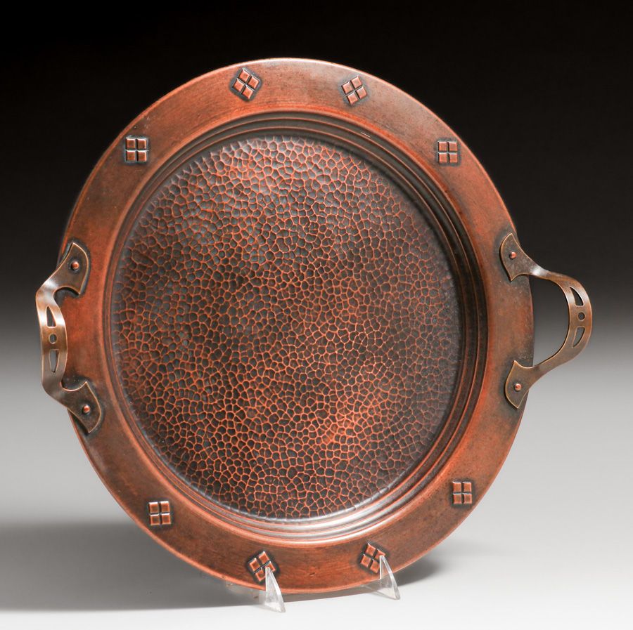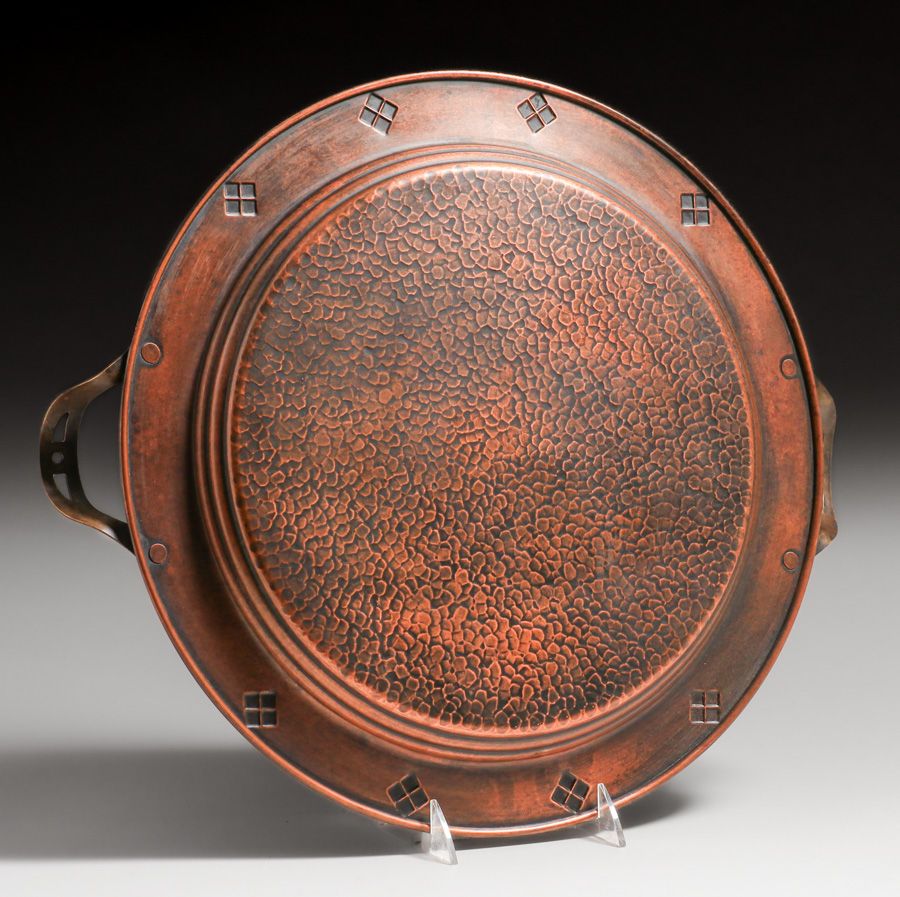 - WMF - German Hammered Copper & Brass Two-Handled Tray c1905