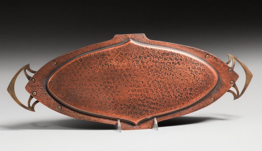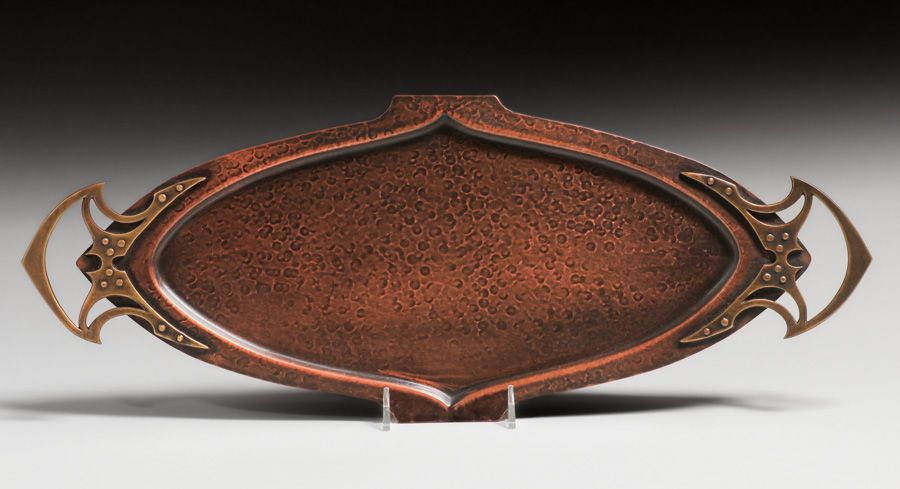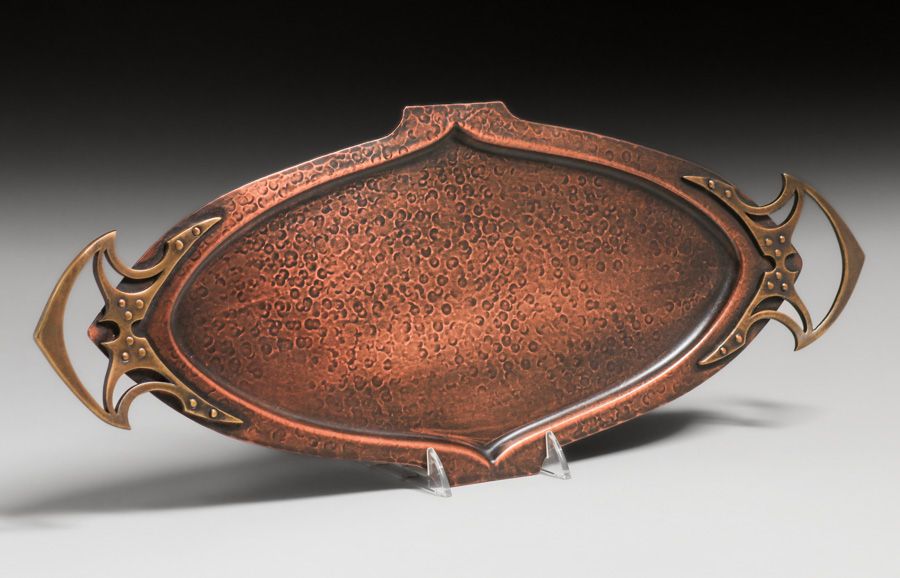 WMF - German Hammered Copper & Brass Two-Handled Tray c1905. Signed. Excellent new patina. 18"w x 7" SOLD