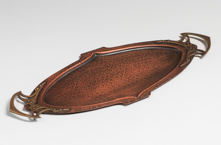 - WMF - German Hammered Copper & Brass Two-Handled Tray c1905