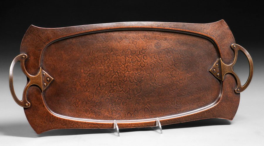 - WMF - German Hammered Copper & Brass Two-Handled Tray c1905