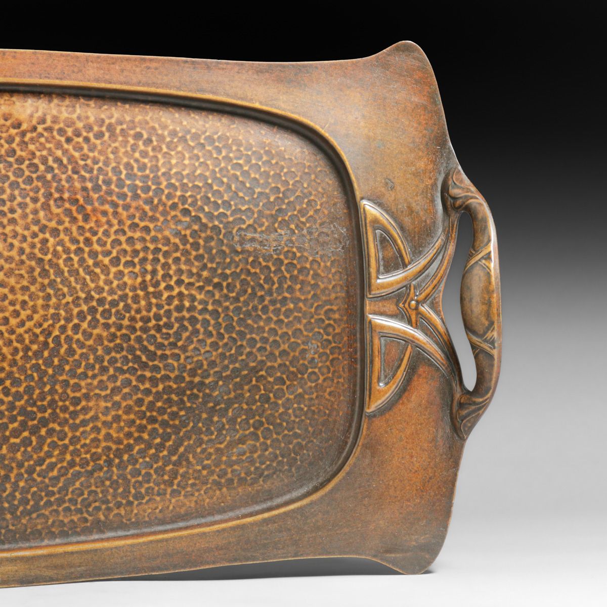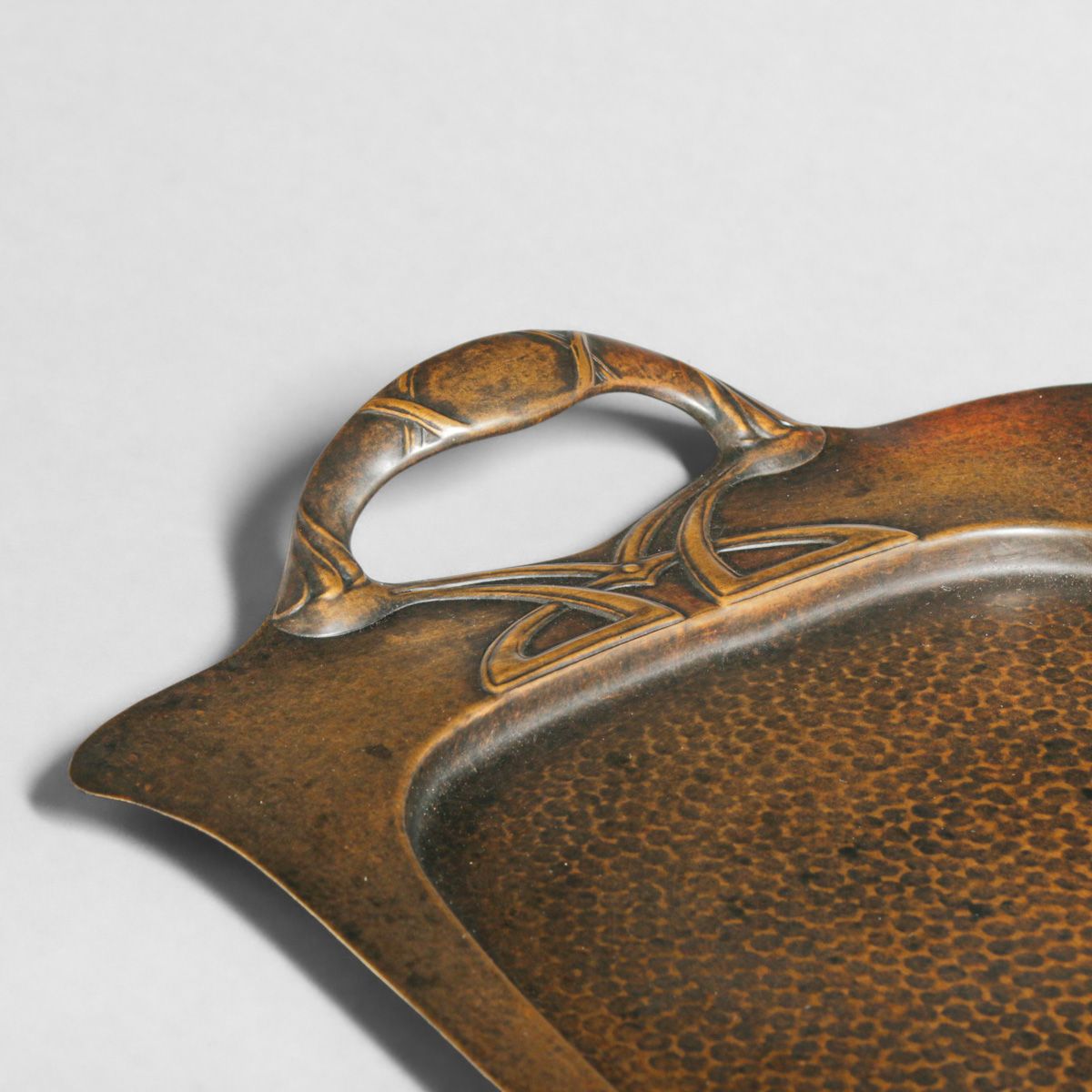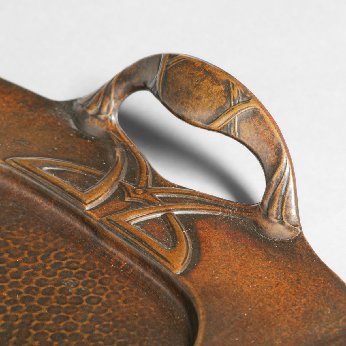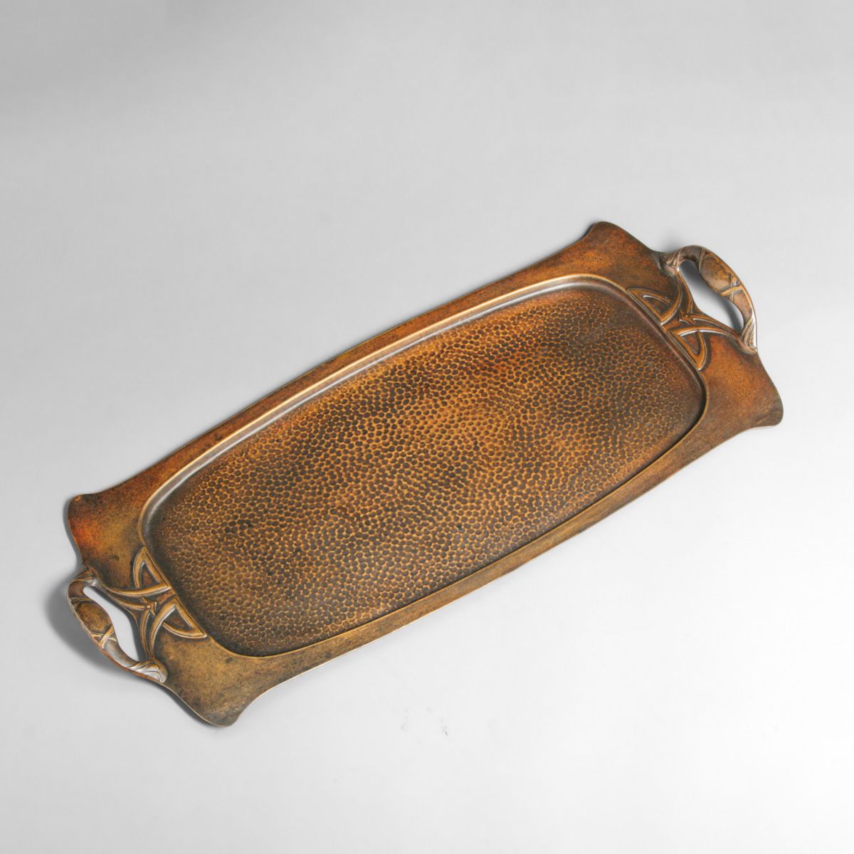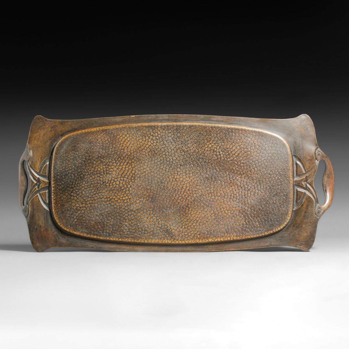 WMF - German Hammered Copper & Brass Two-Handled Tray c1905. Unsigned. Excellent new patina. 24.5" x 10.5"
