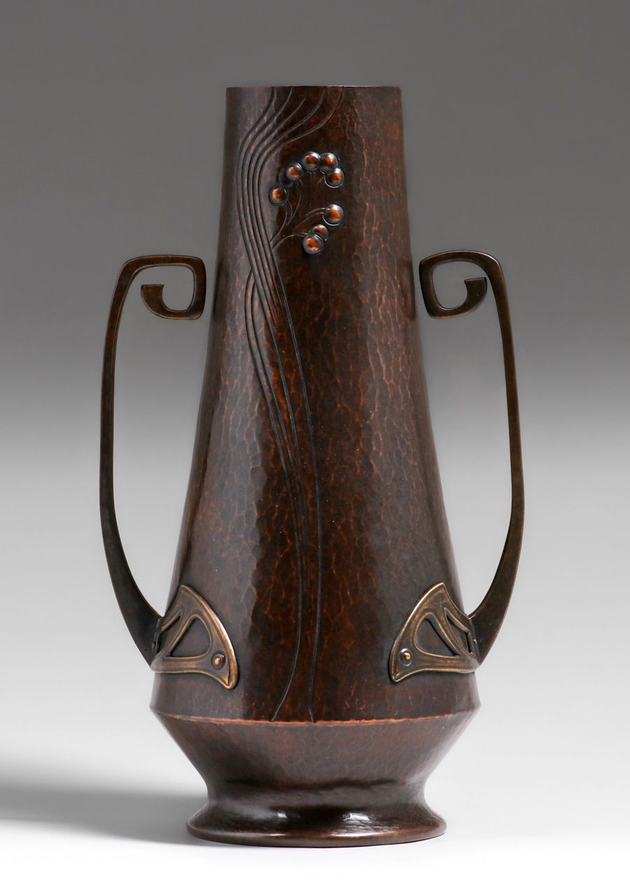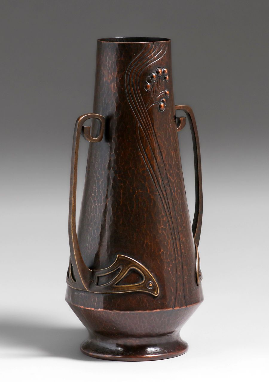- WMF - German Hammered Copper & Brass Two-Handled Vase c1905