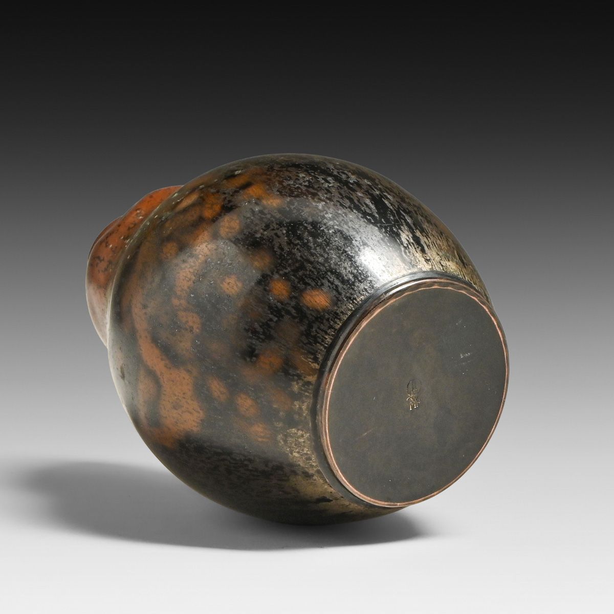 WMF - German Ikora Art Deco "Dinanderie" Gourd Vase c1920s. Signed. Excellent original patina. 4.25"h x 3"d