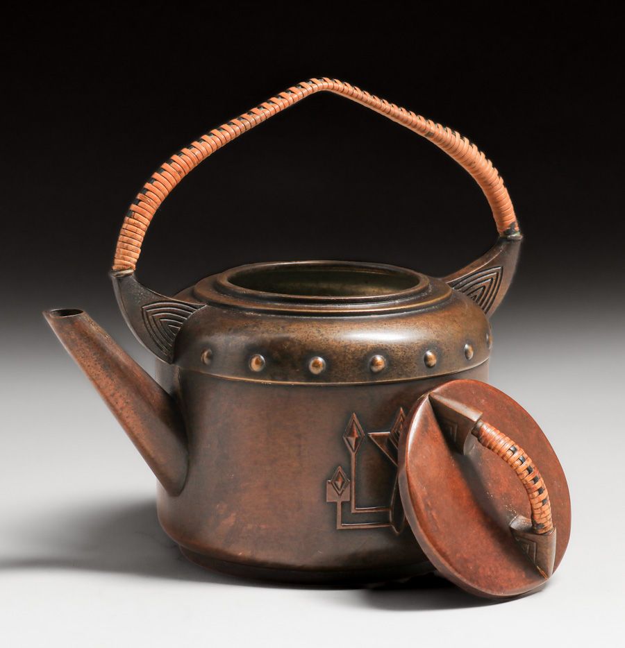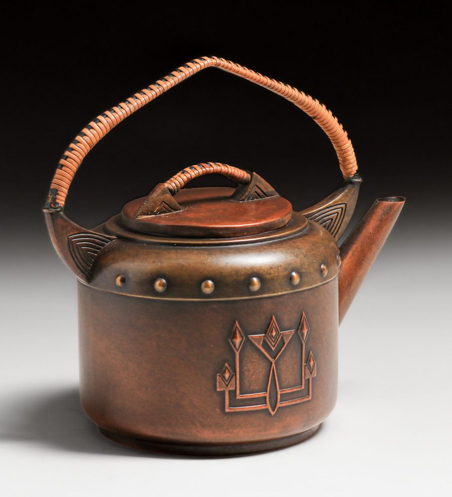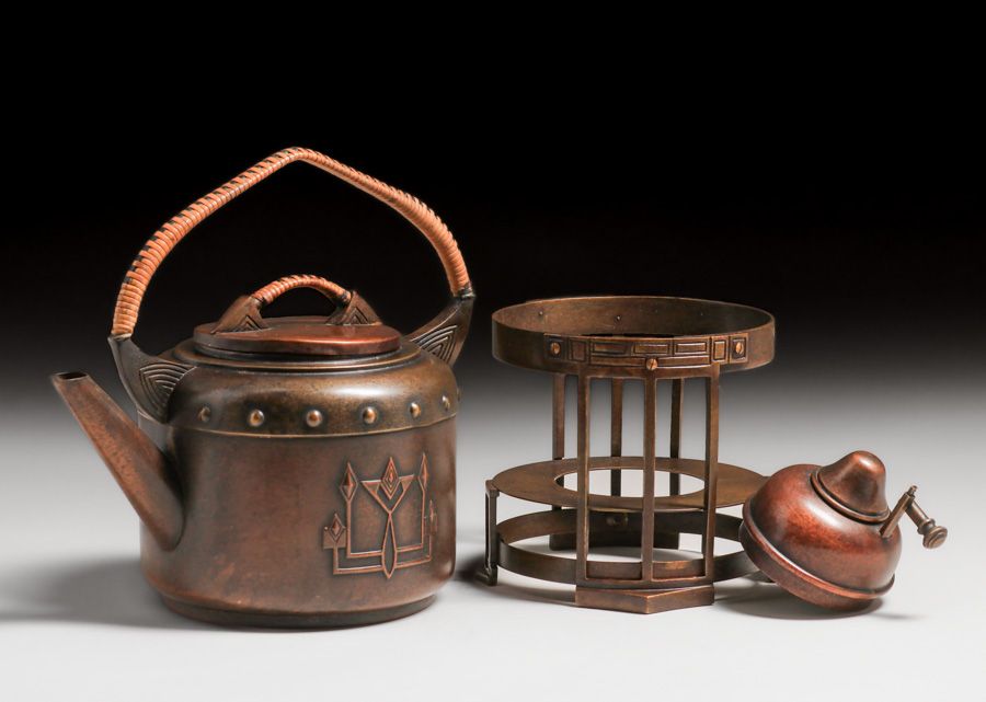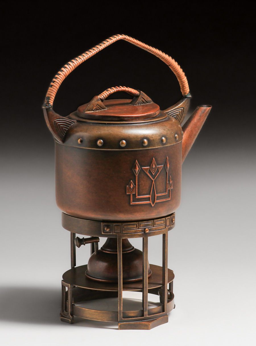 - WMF - German Secessionist Copper & Brass Teapot & Burner c1905
