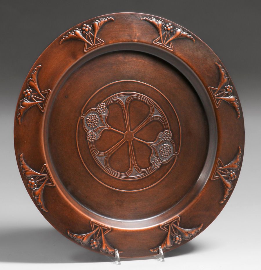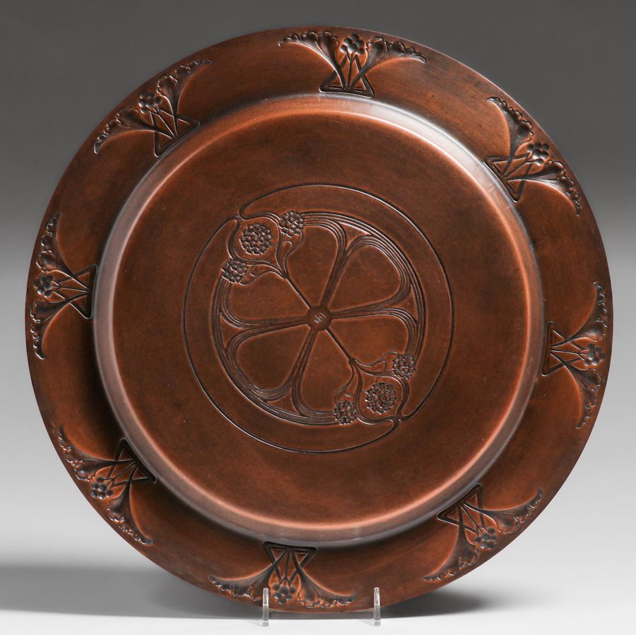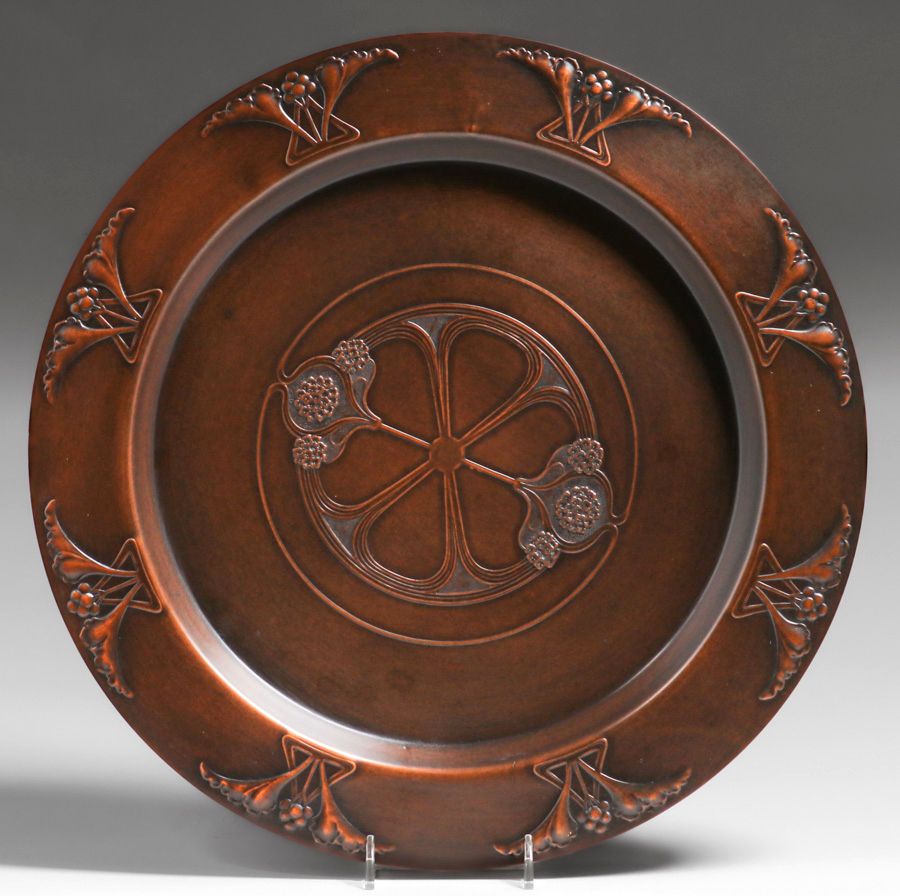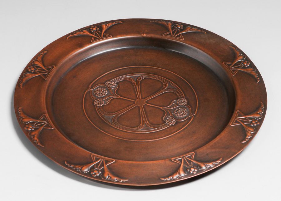 WMF - German Secessionist Copper Tray c1905. Signed. Excellent new patina. 13.75"d SOLD