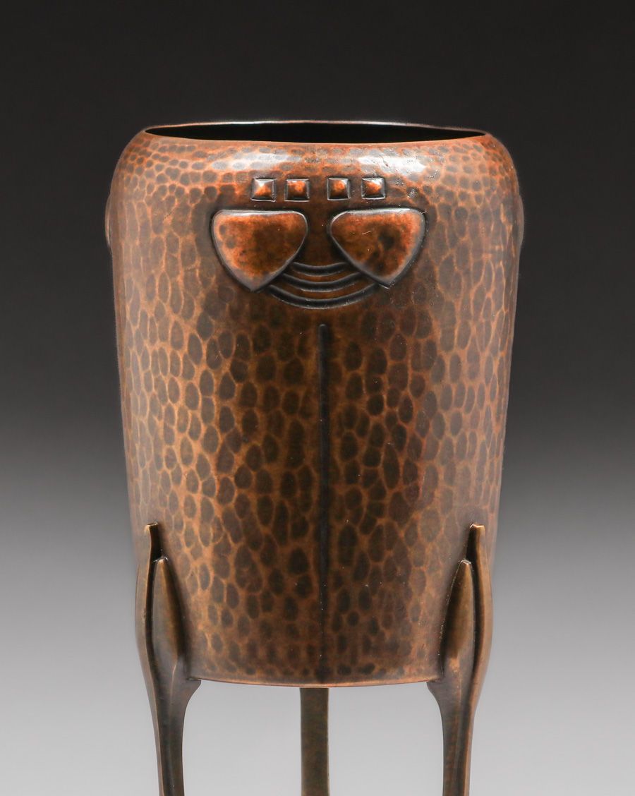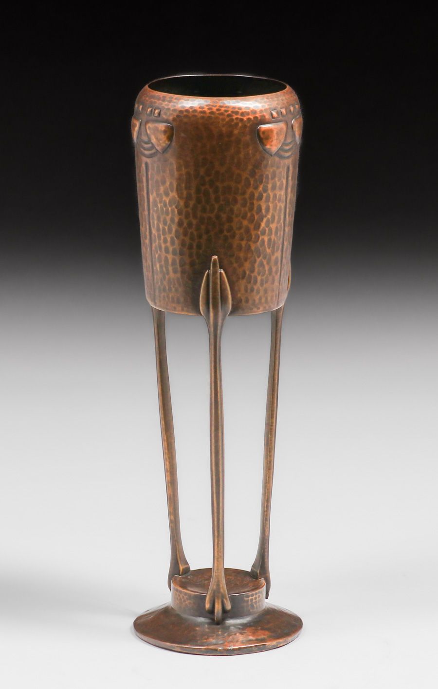 - WMF - German Secessionist Repousse Hammered Copper & Brass Three-Stemmed Vase c1905