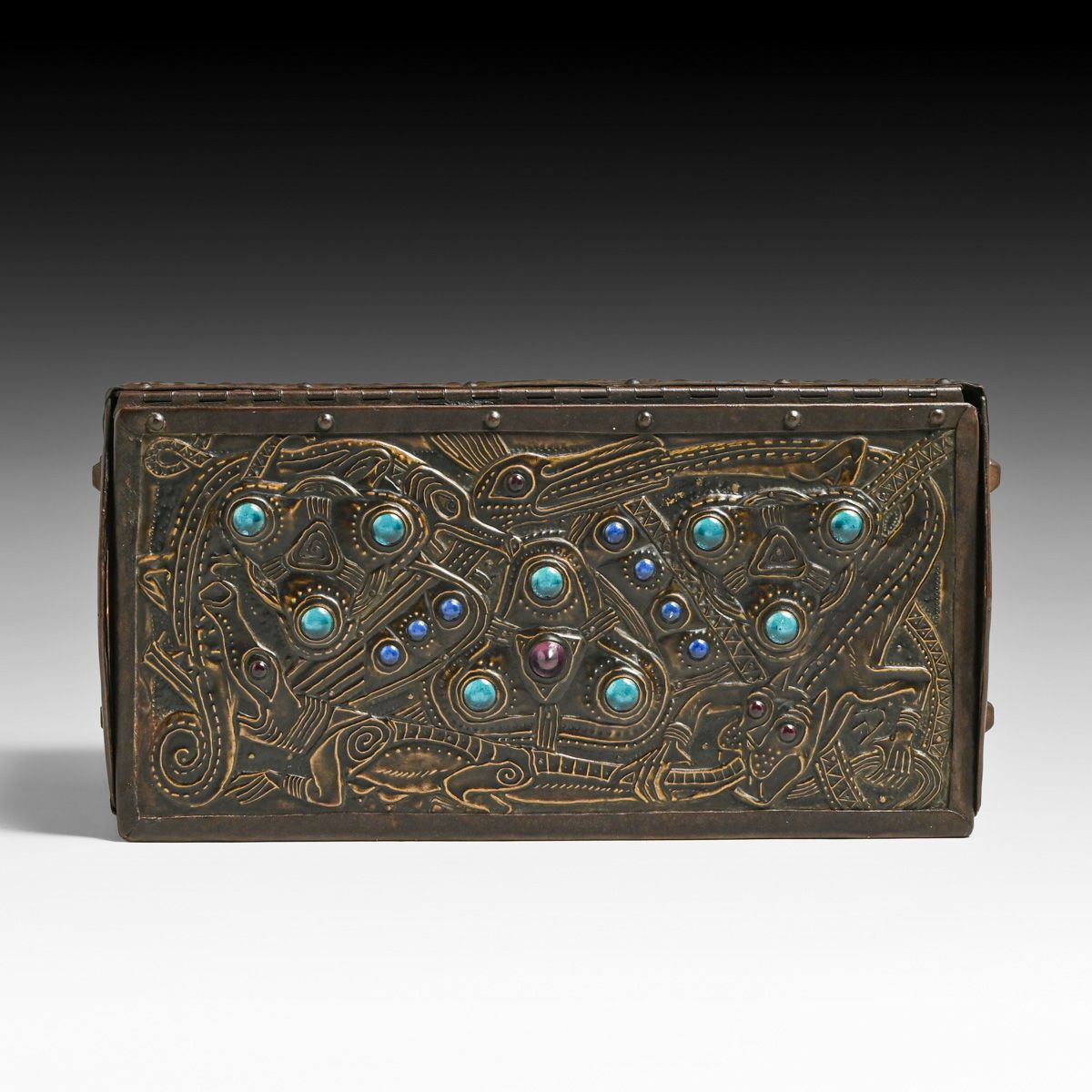 - Alfred-Louis-Achille Daguet (French 1875–1942) Art Nouveau Hammered Copper & Iron Cabochon Jeweled Box c1900s