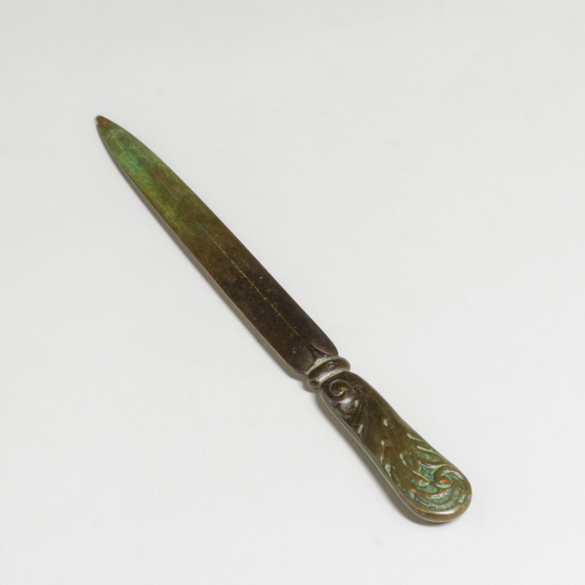 Art Nouveau Bronze Paper Knife c1910. Signed with unknown hallmark. Excellent original patina. 8" long x 1"w