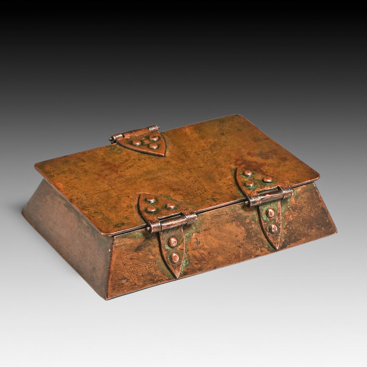 - Arts & Crafts Period Copper Strap-Hinge Box c1920
