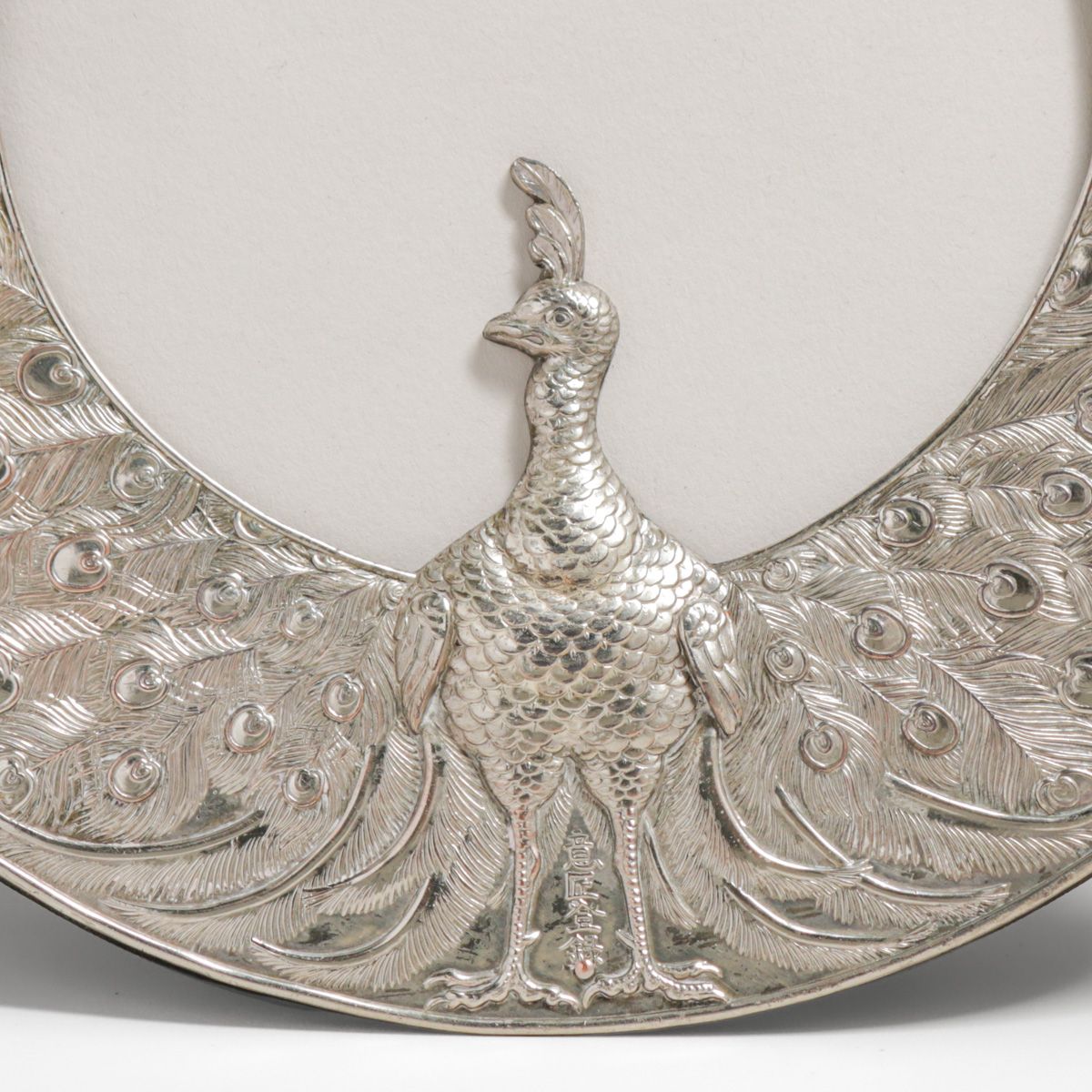 - Japanese Arts & Crafts Period Silver-Plated Peacock Feather Picture Frame c1910s