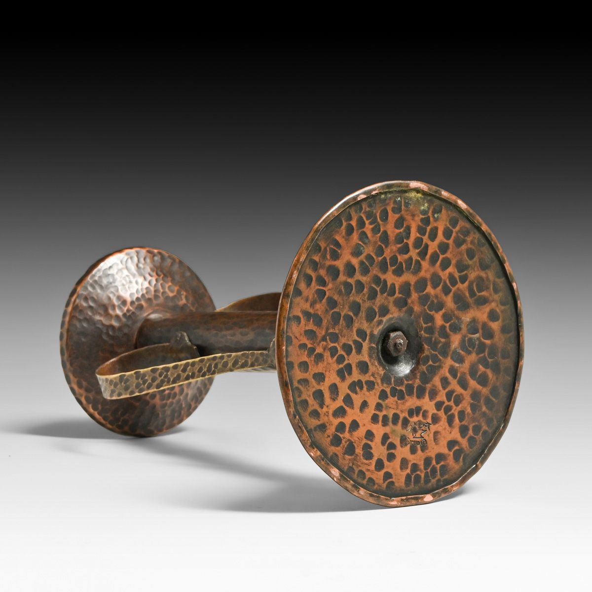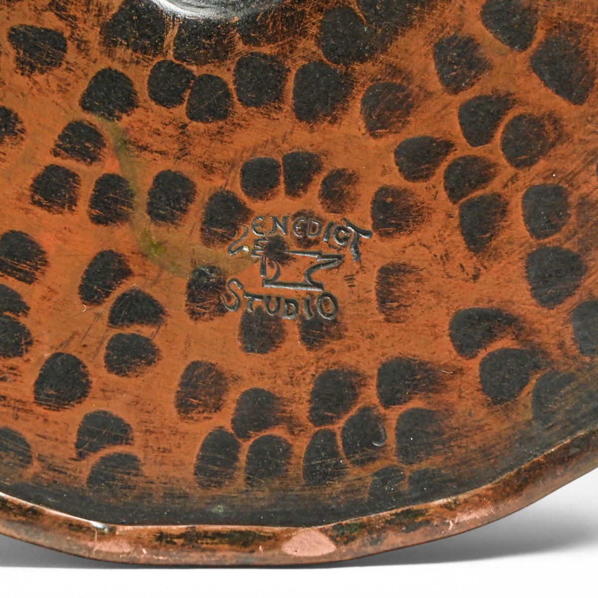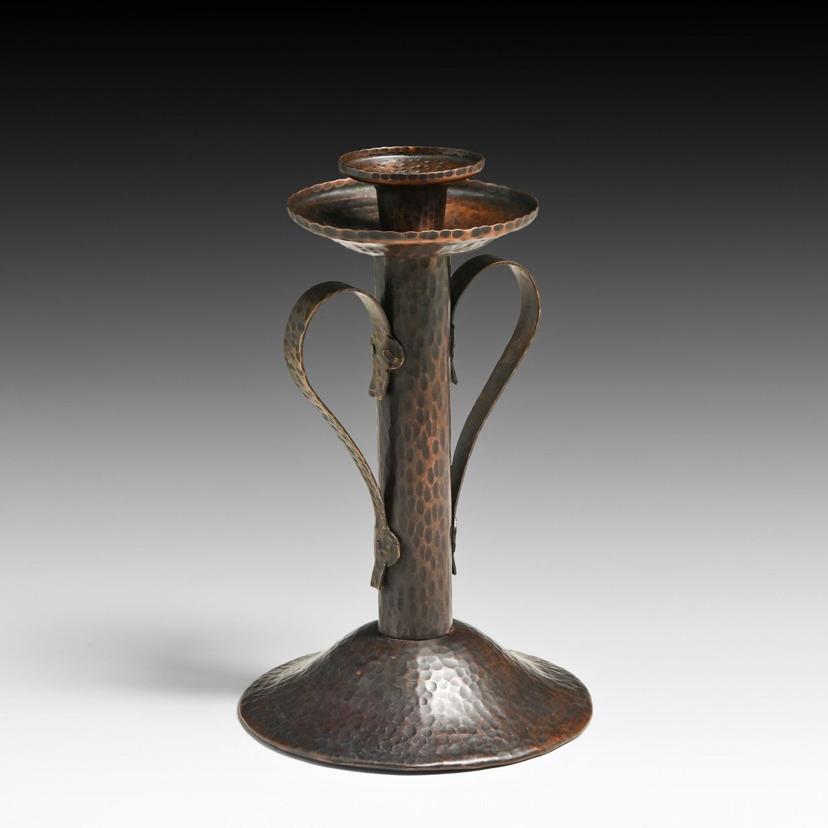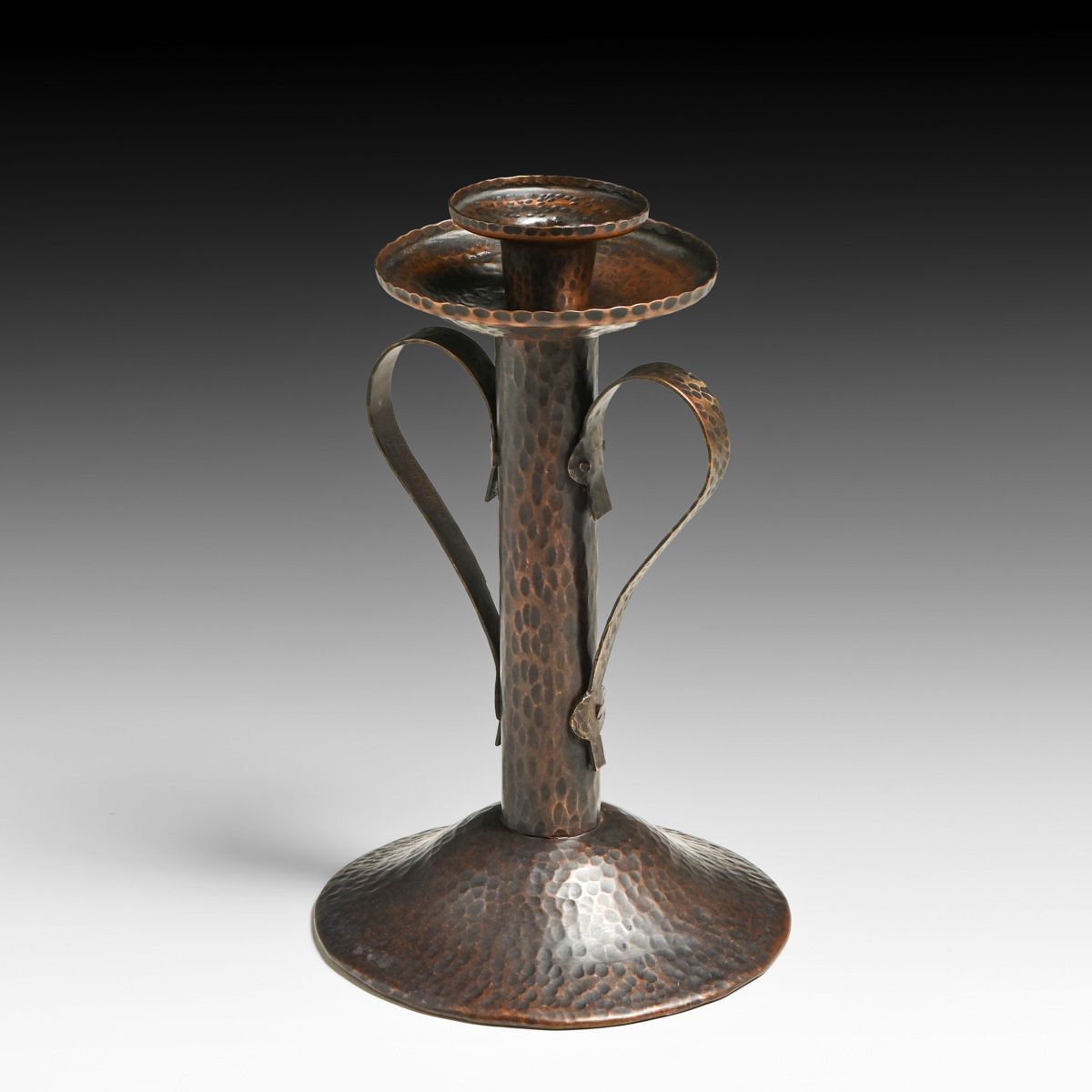 Benedict Studios Hammered Copper Candlestick c1910. Signed. Excellent original patina. 8"h x 5"d