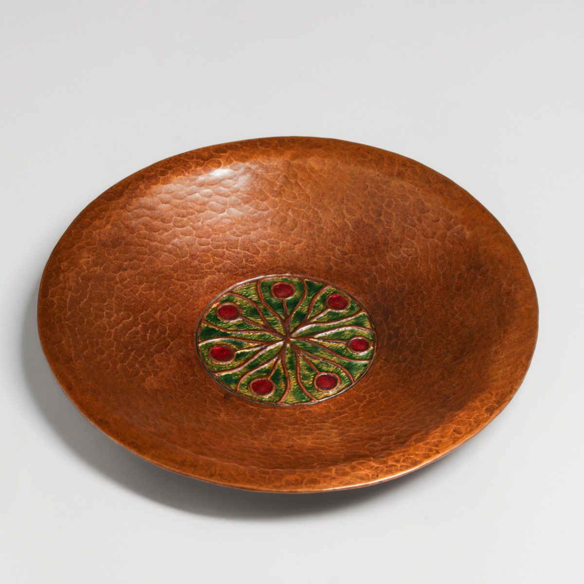 - Boston Arts & Crafts Hammered Copper & Enamel Tray c1920s