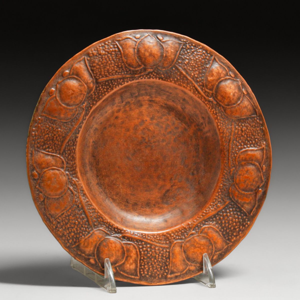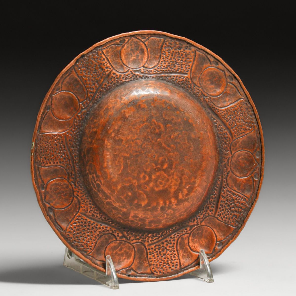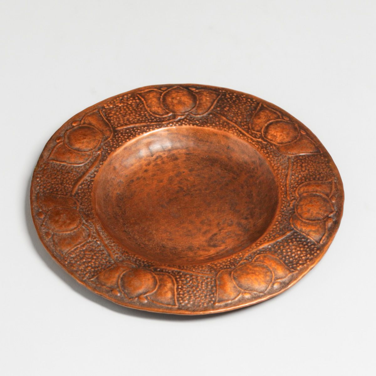 - Boston Arts & Crafts Hammered Copper Seed-Pod Repousse Tray c1905