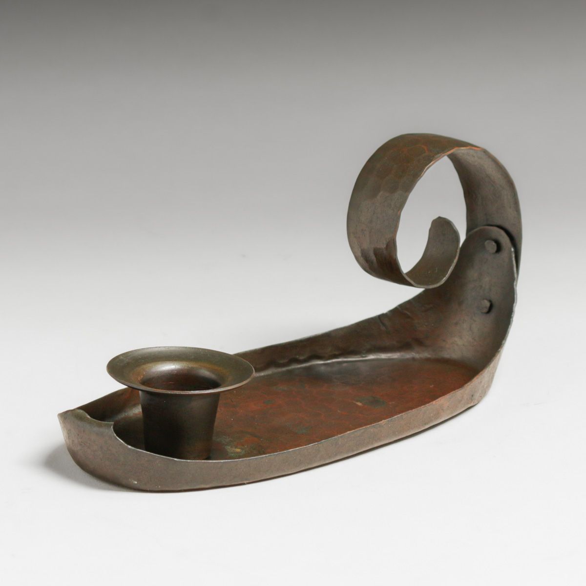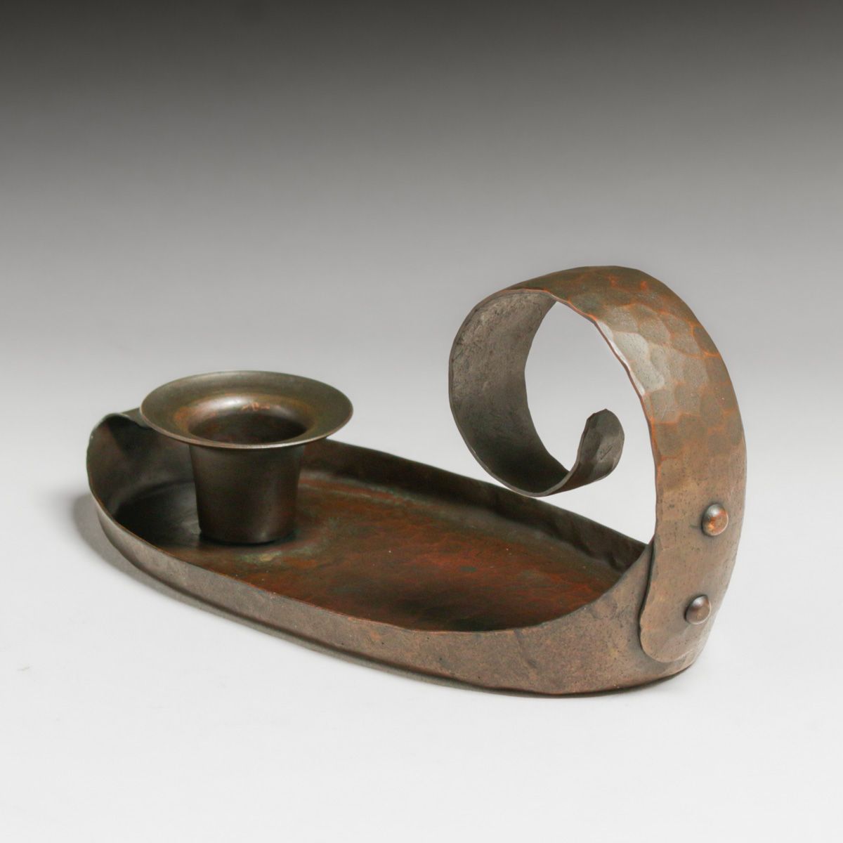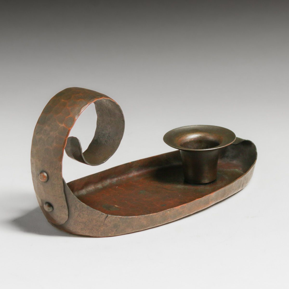 - Early Craftsman Studios - Los Angeles Hammered Copper Candlestick c1920s