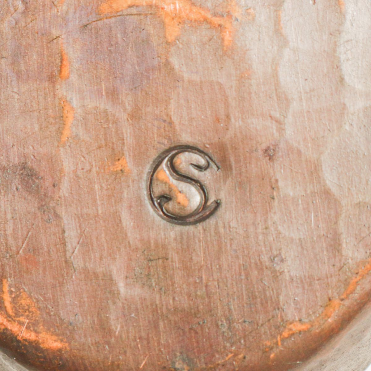 Early Craftsman Studios - Los Angeles Hammered Copper Candlestick c1920s. Signed. Excellent original patina. 6.5"w x 3"h x 3"w