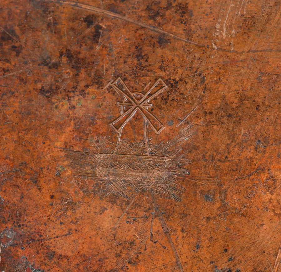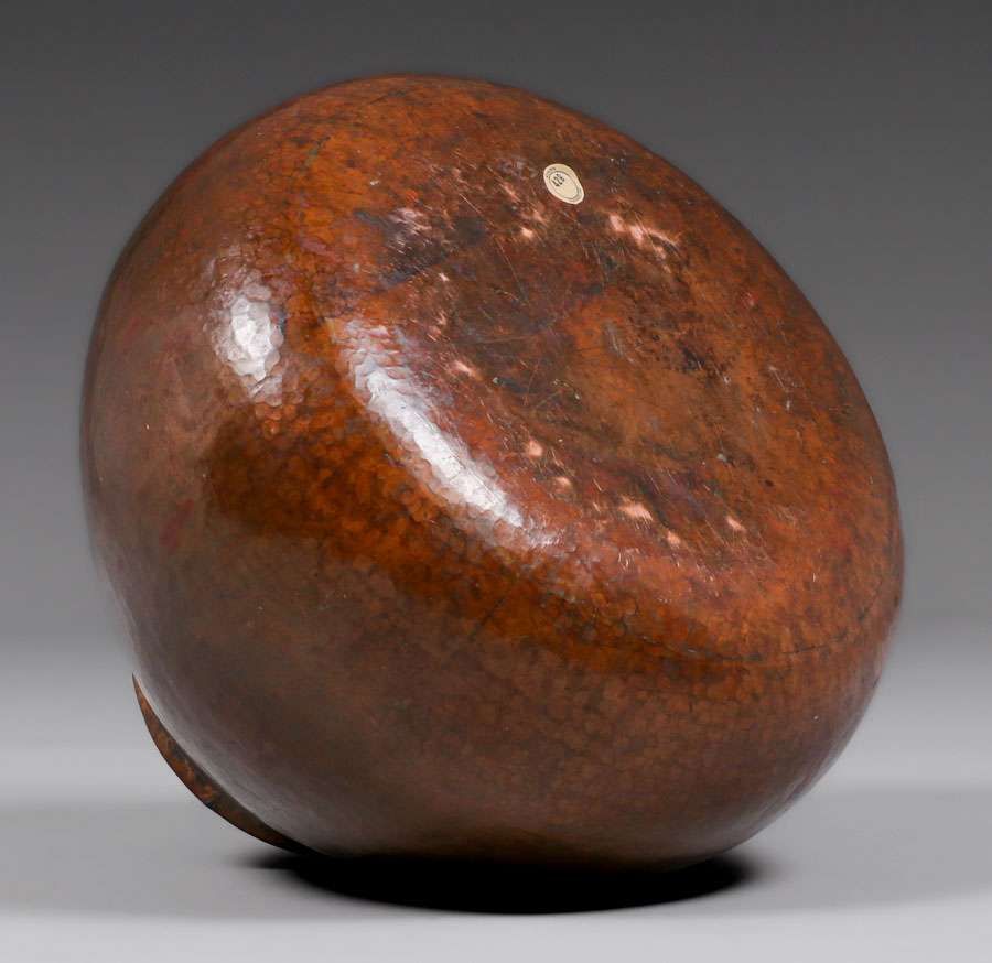 Large Dirk van Erp Hammered Copper Covered Vase c1911-1912. The closed-box signature has been partially scratched off, likely by another retail shop. Excellent original patina. 15"d x 13.5"h