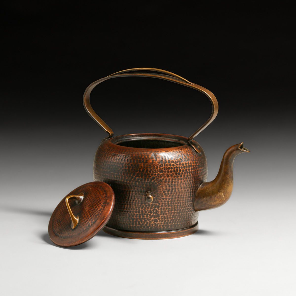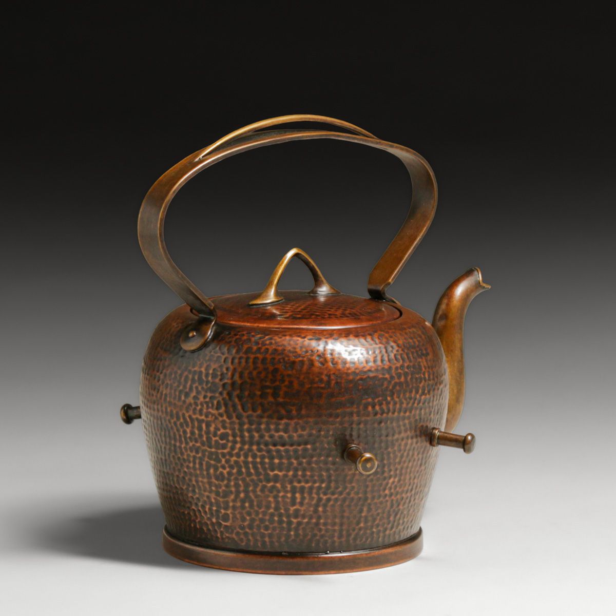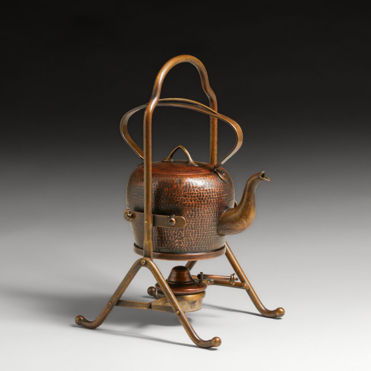 Gebrüder Bing - German Hammered Copper Spirit Kettle c1905. Signed. Excellent new patina. 13.75"h x 7.75"w x 8.5"d