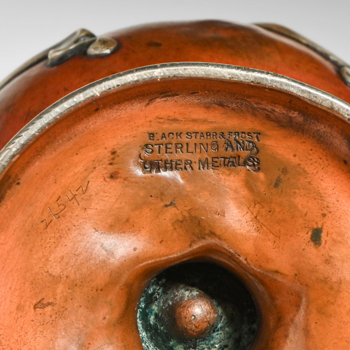Joseph Heinrichs Hammered Copper & Silver Cigar Lighter c1900. Made for Black, Starr & Frost. Excellent new patina. 3.5"h x 3.75"w