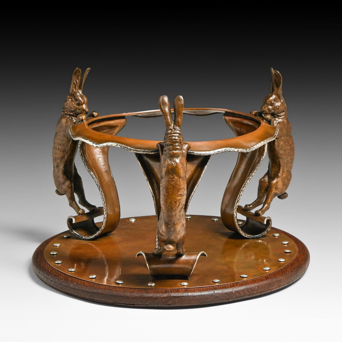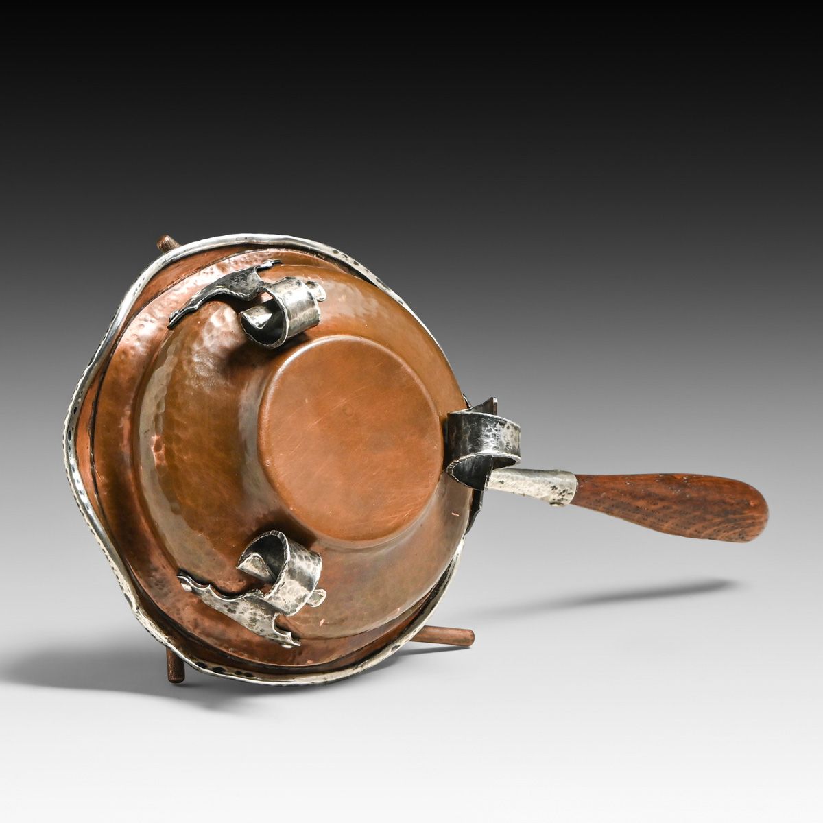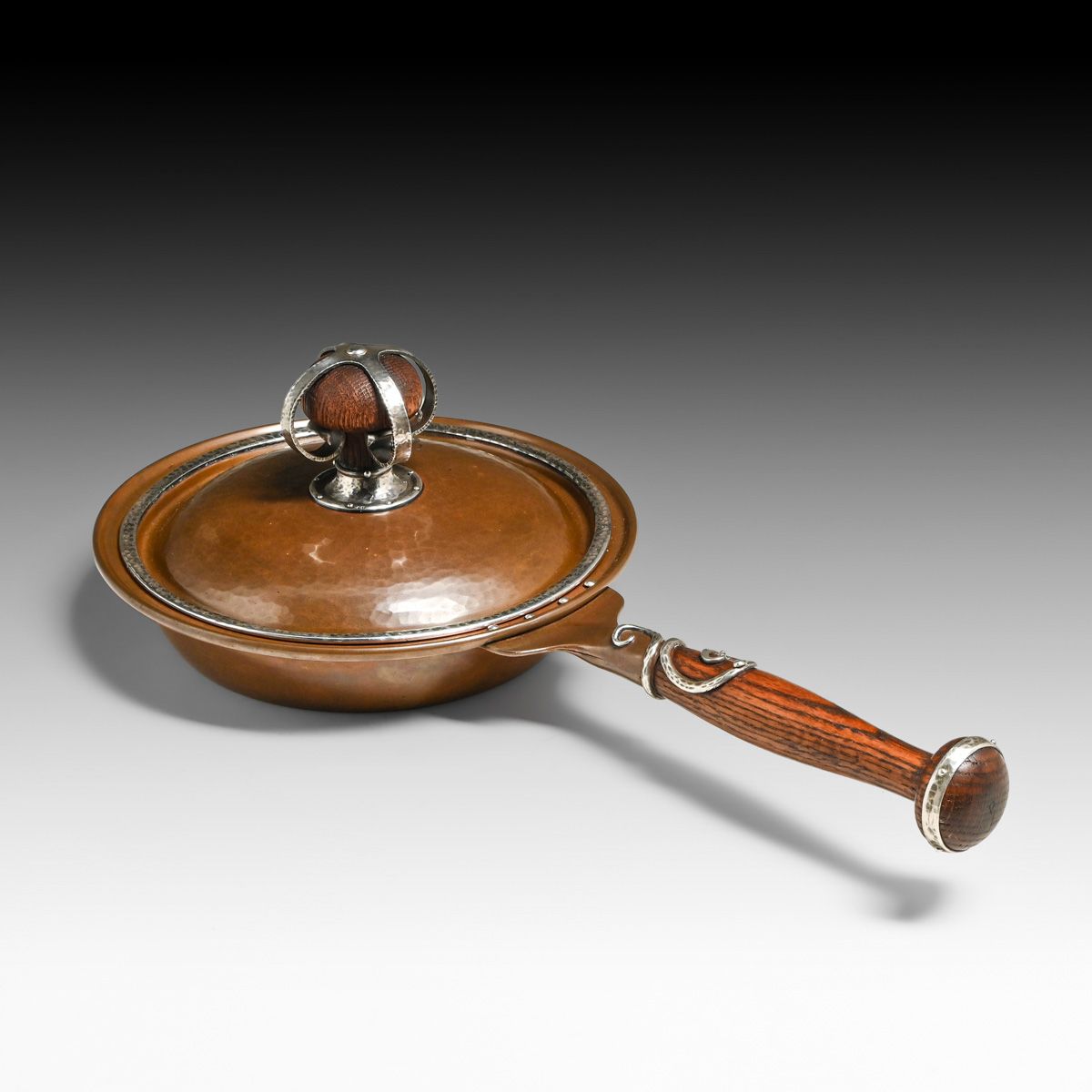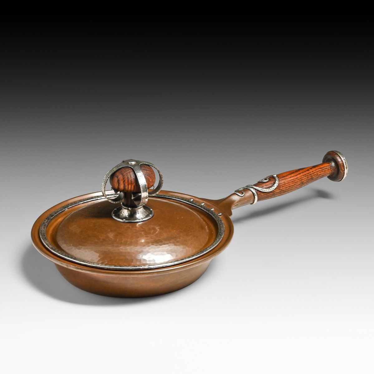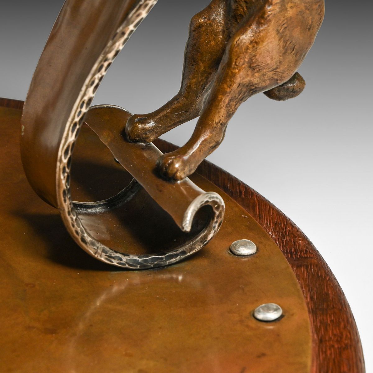 - Joseph Heinrichs Hammered Copper & Silver Cutout Rabbit Chafing Dish c1910
