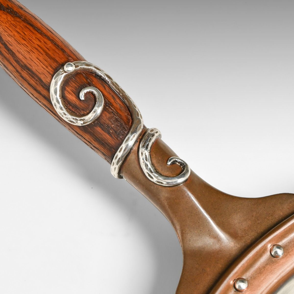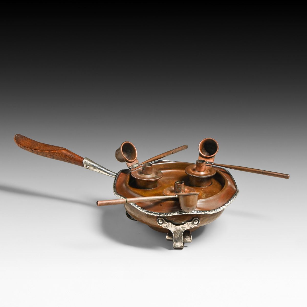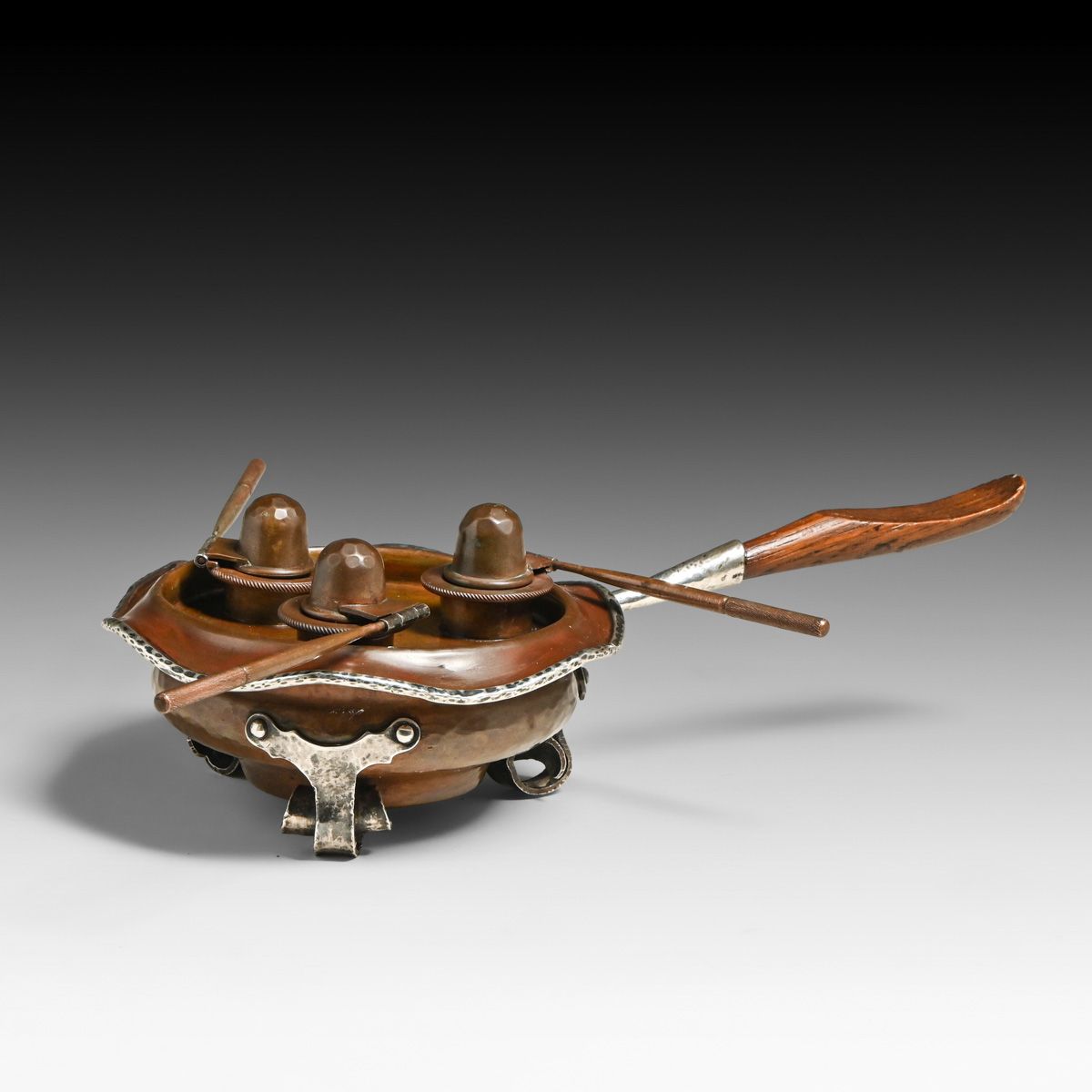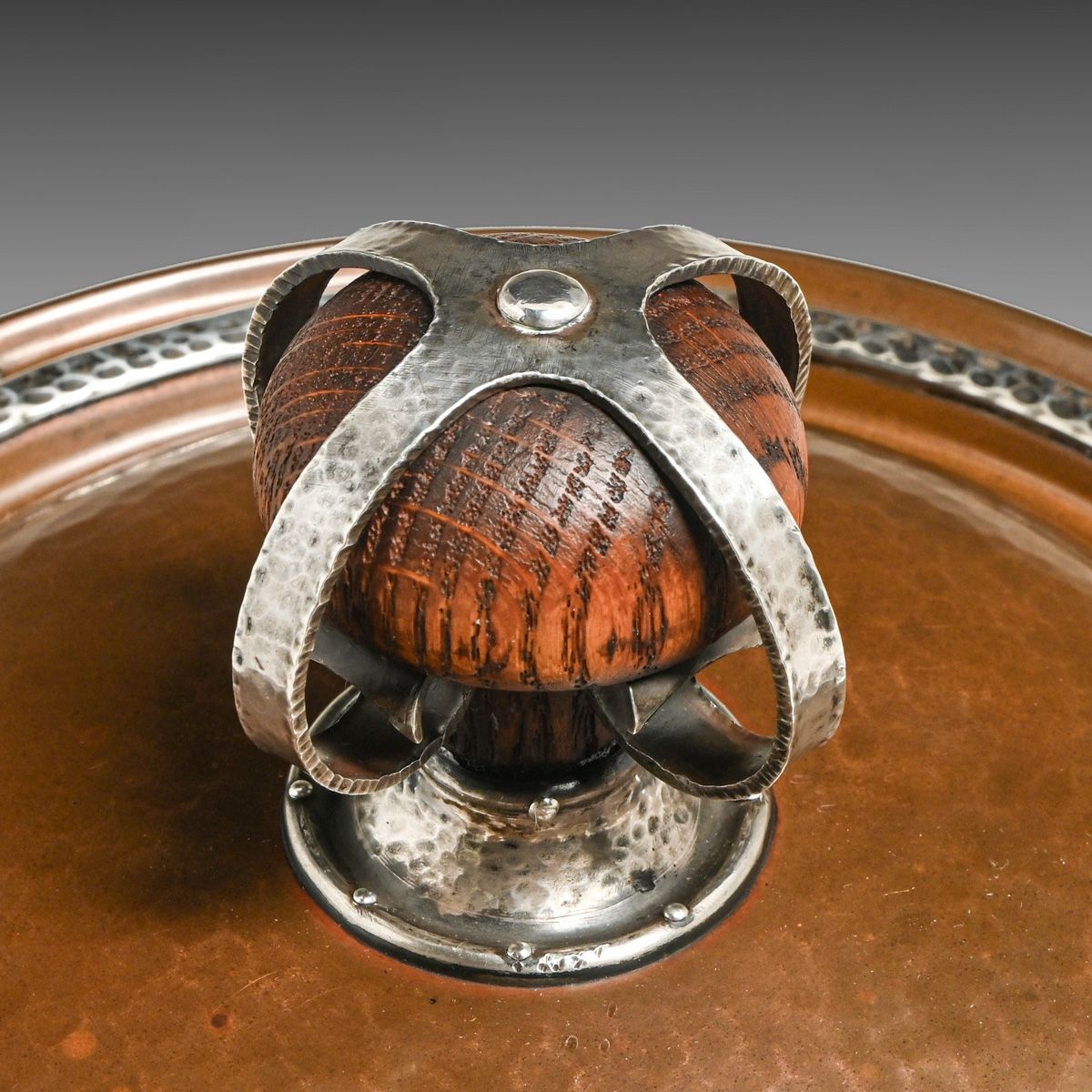 - Joseph Heinrichs Hammered Copper & Silver Cutout Rabbit Chafing Dish c1910