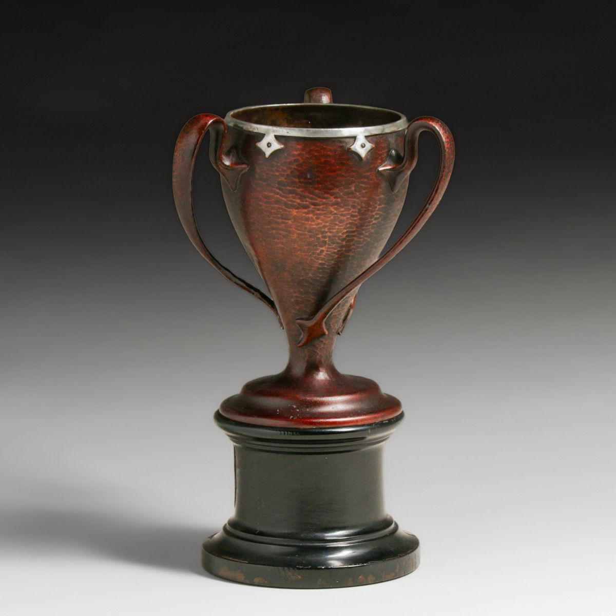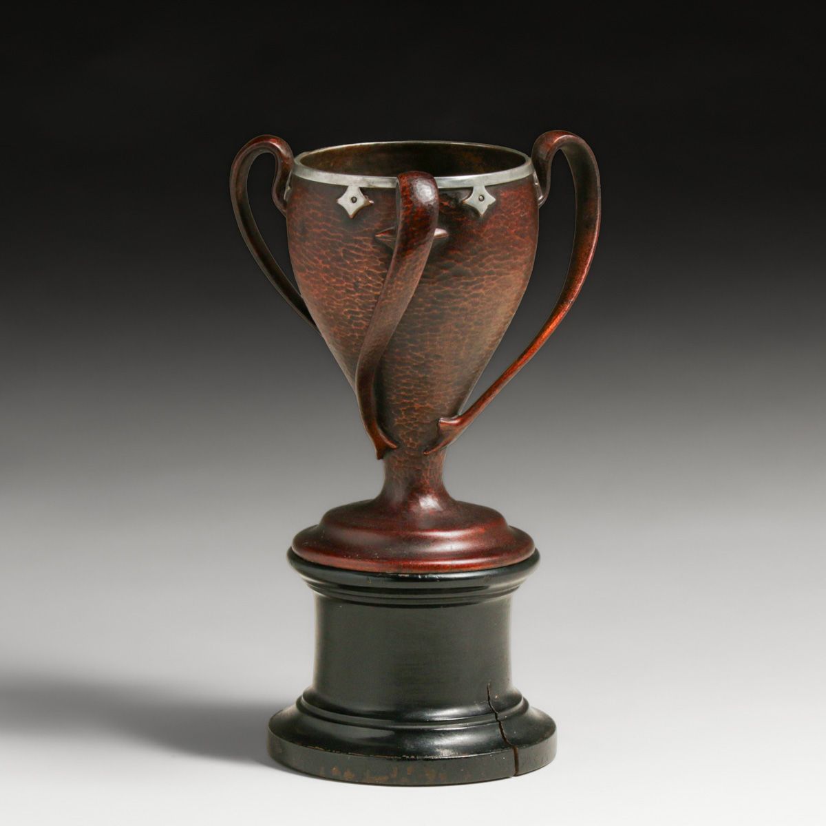 Joseph Heinrichs Hammered Copper & Silver Three-Handled Presentation Vase 1919. Unsigned. Excellent new patina. 10.5"h x 7"d