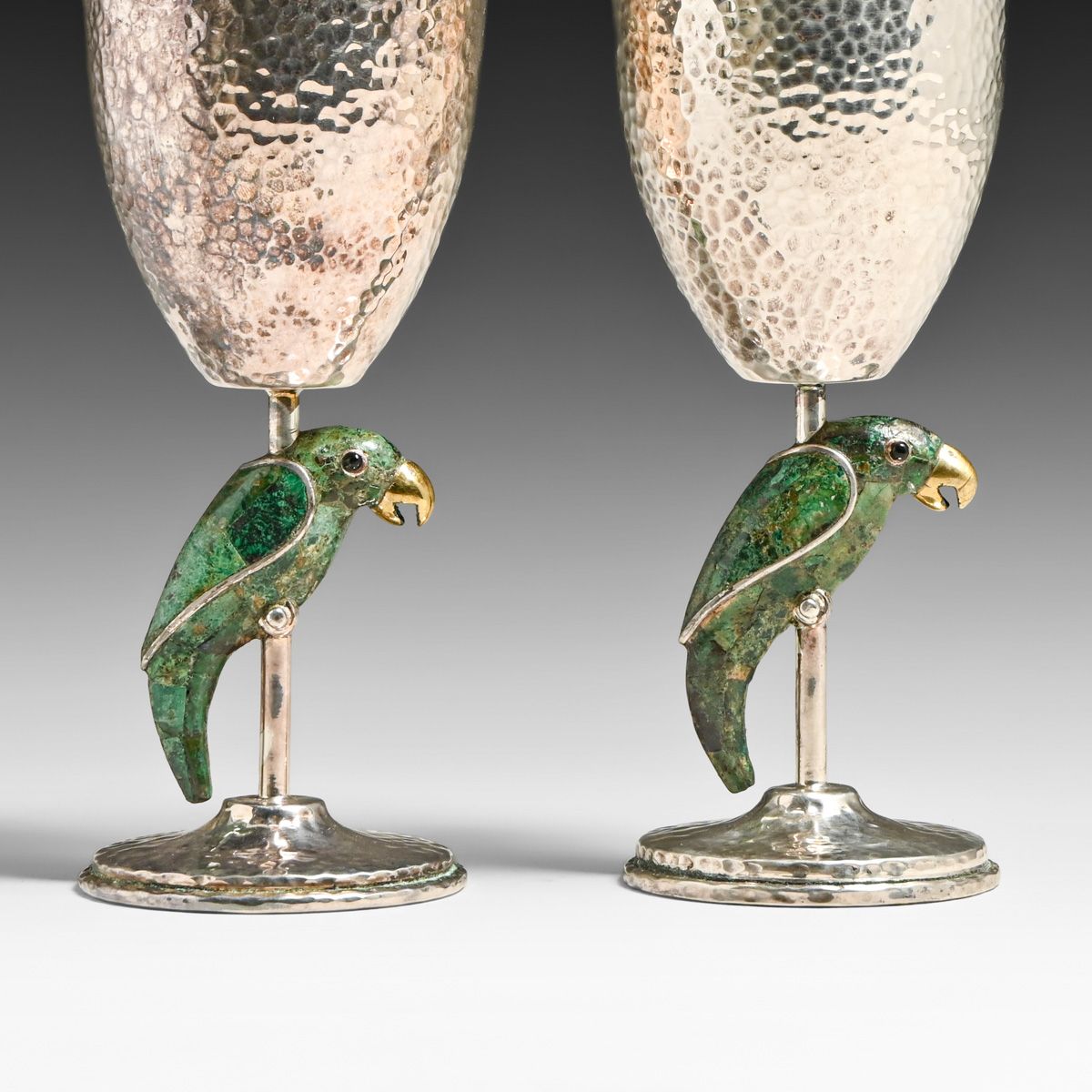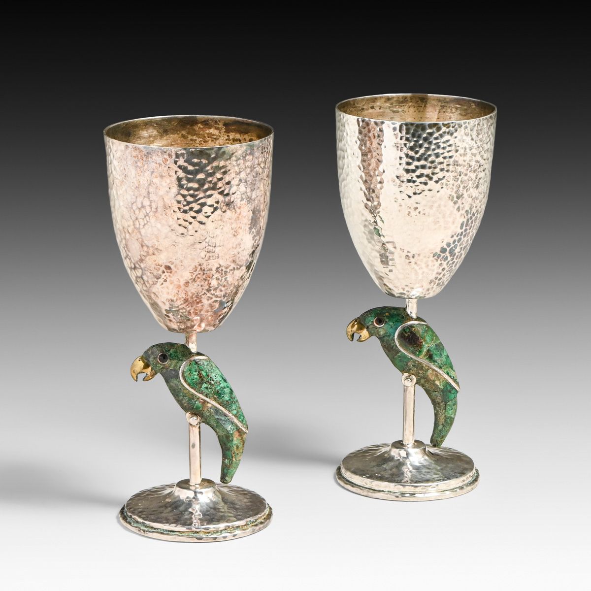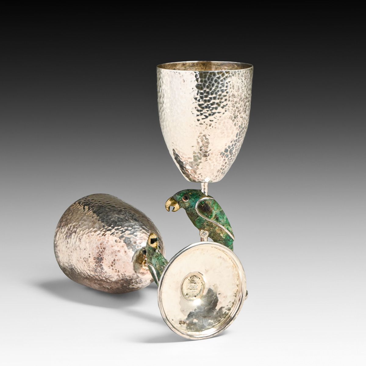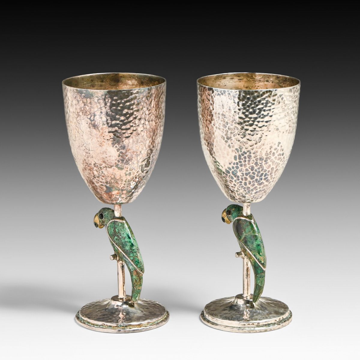- Vintage Los Castillo Taxco Silver-Plated Parrot Wine Goblets c1950s/60s