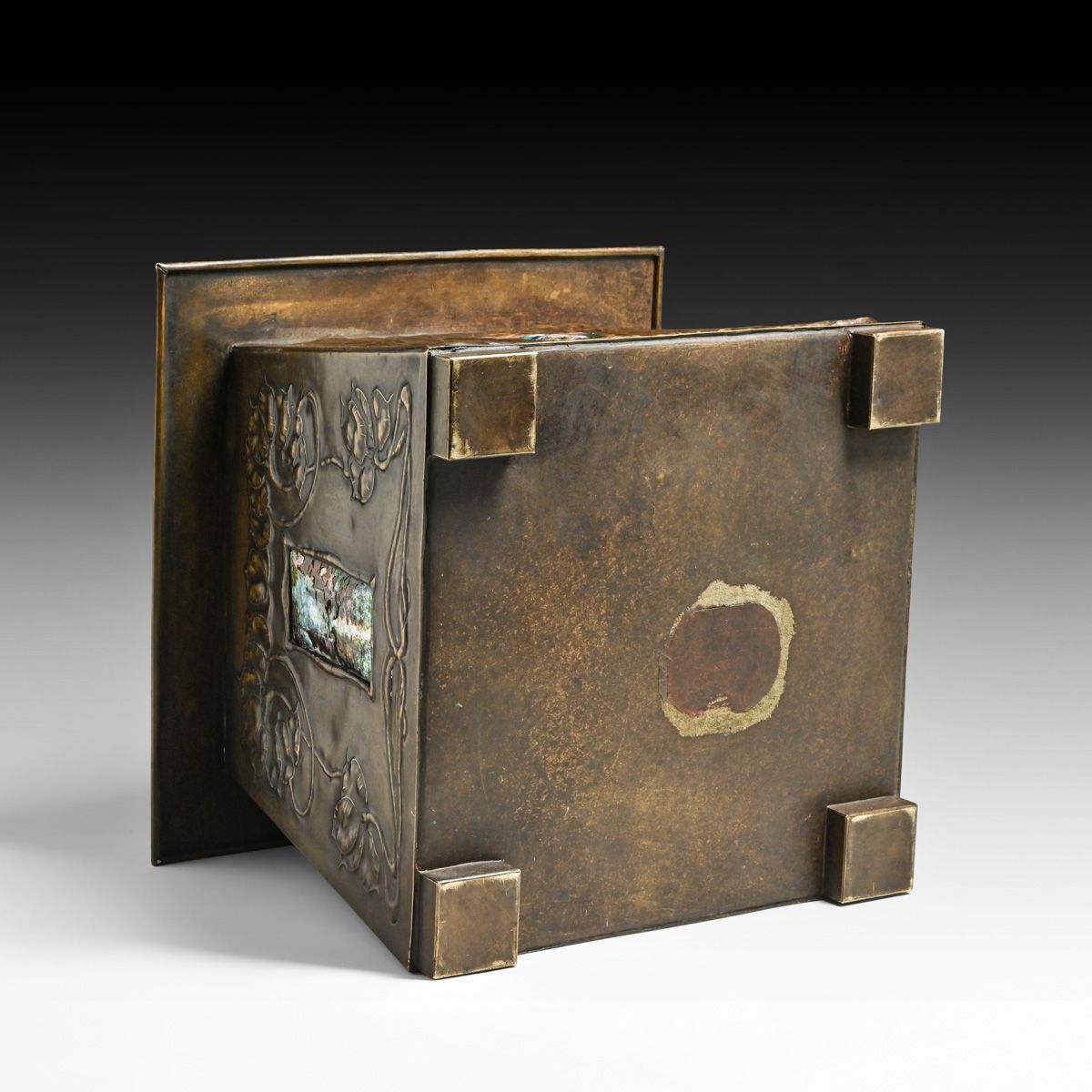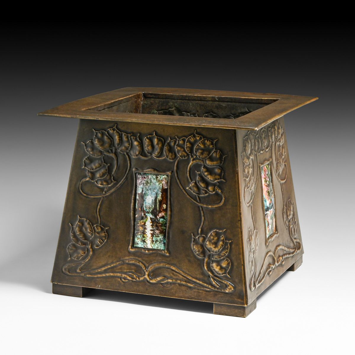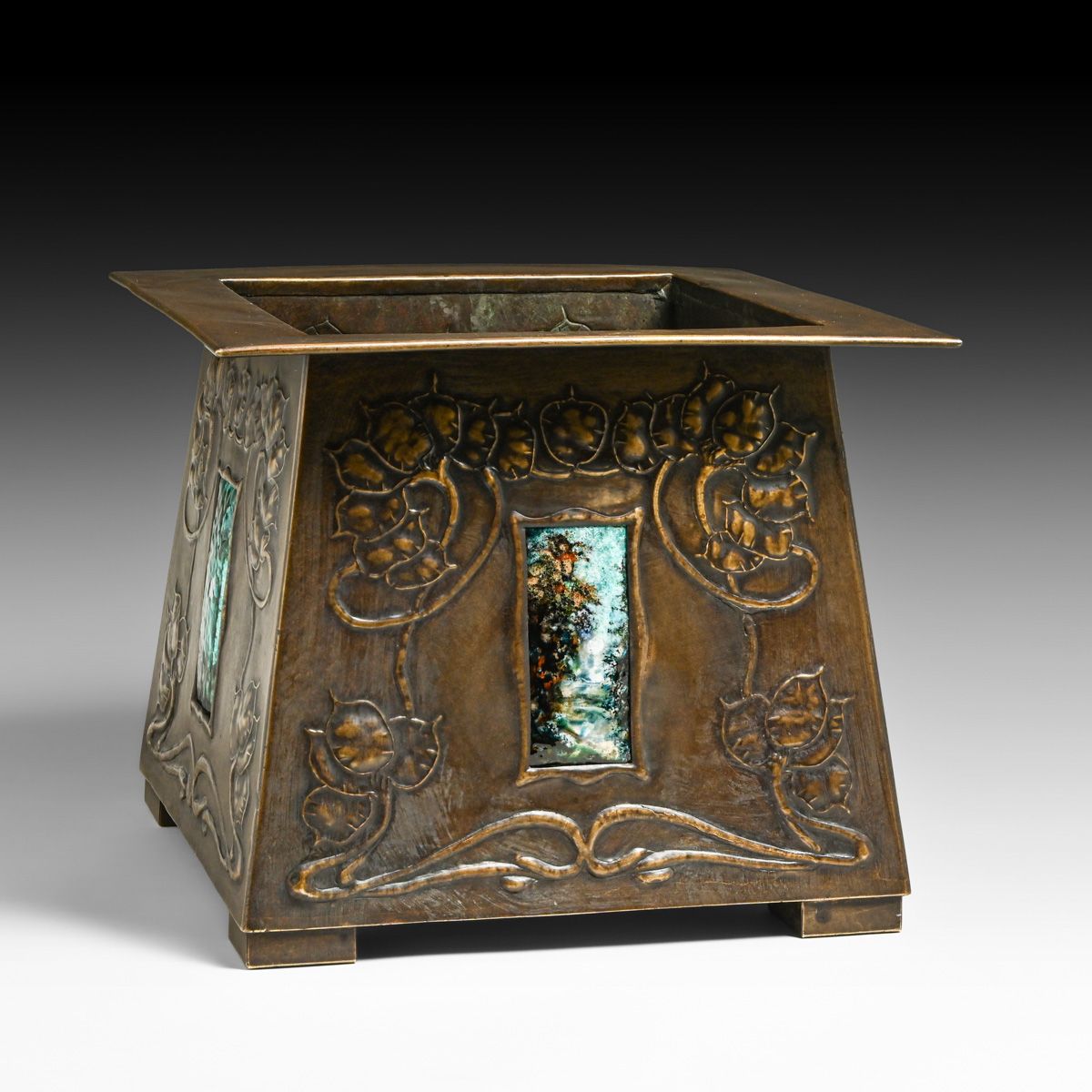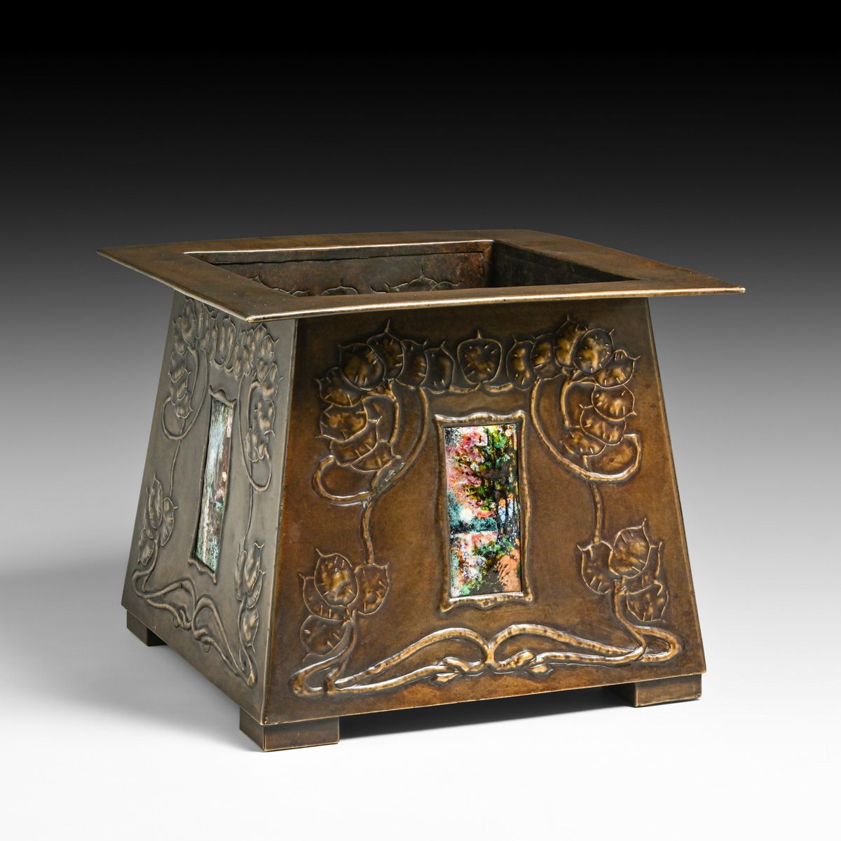 - Margaret Gilmour - Glasgow Hammered Copper & Enamel Square Jardiniere c1905