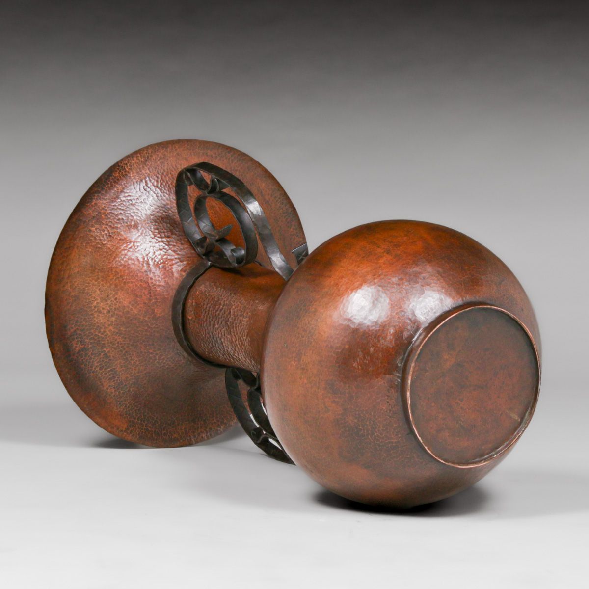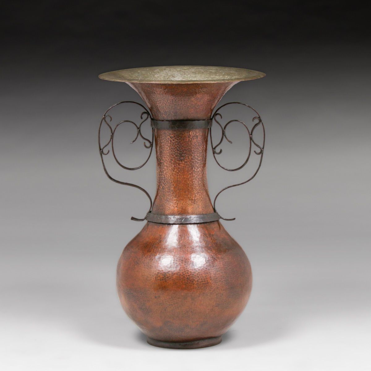- Huge Arts & Crafts Period Hammered Copper & Hand-Forged Iron Two-Handled Floor Vase c1910
