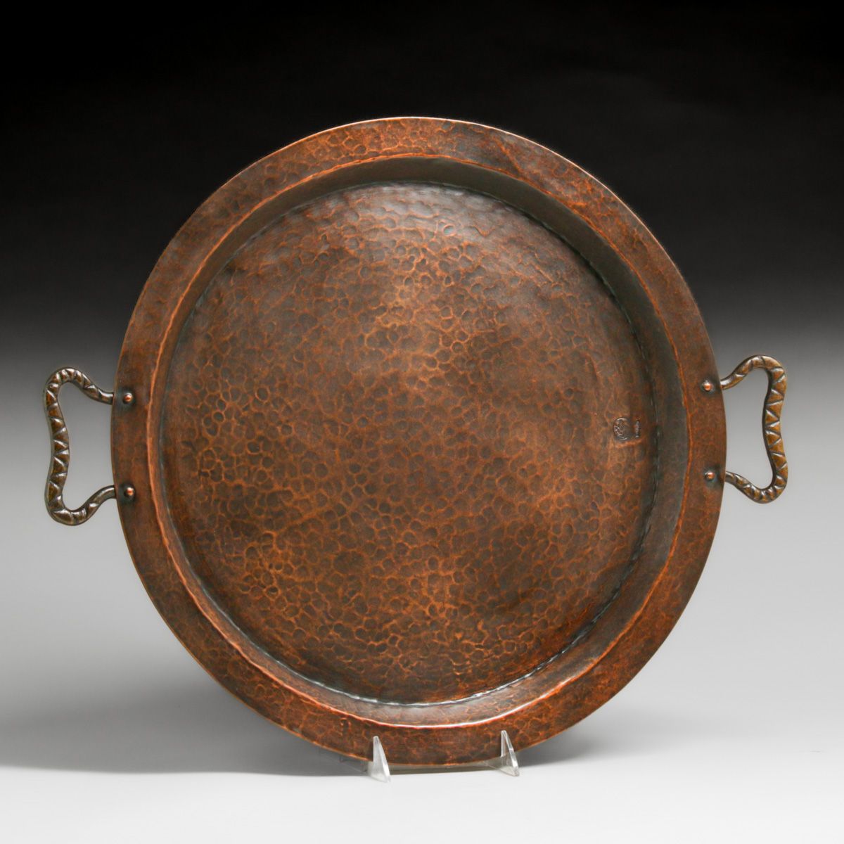 Russian Arts & Crafts Hammered Copper & Brass Two-Handled Tray c1910. Signed. Excellent new patina. 21"w x 17.5"d
