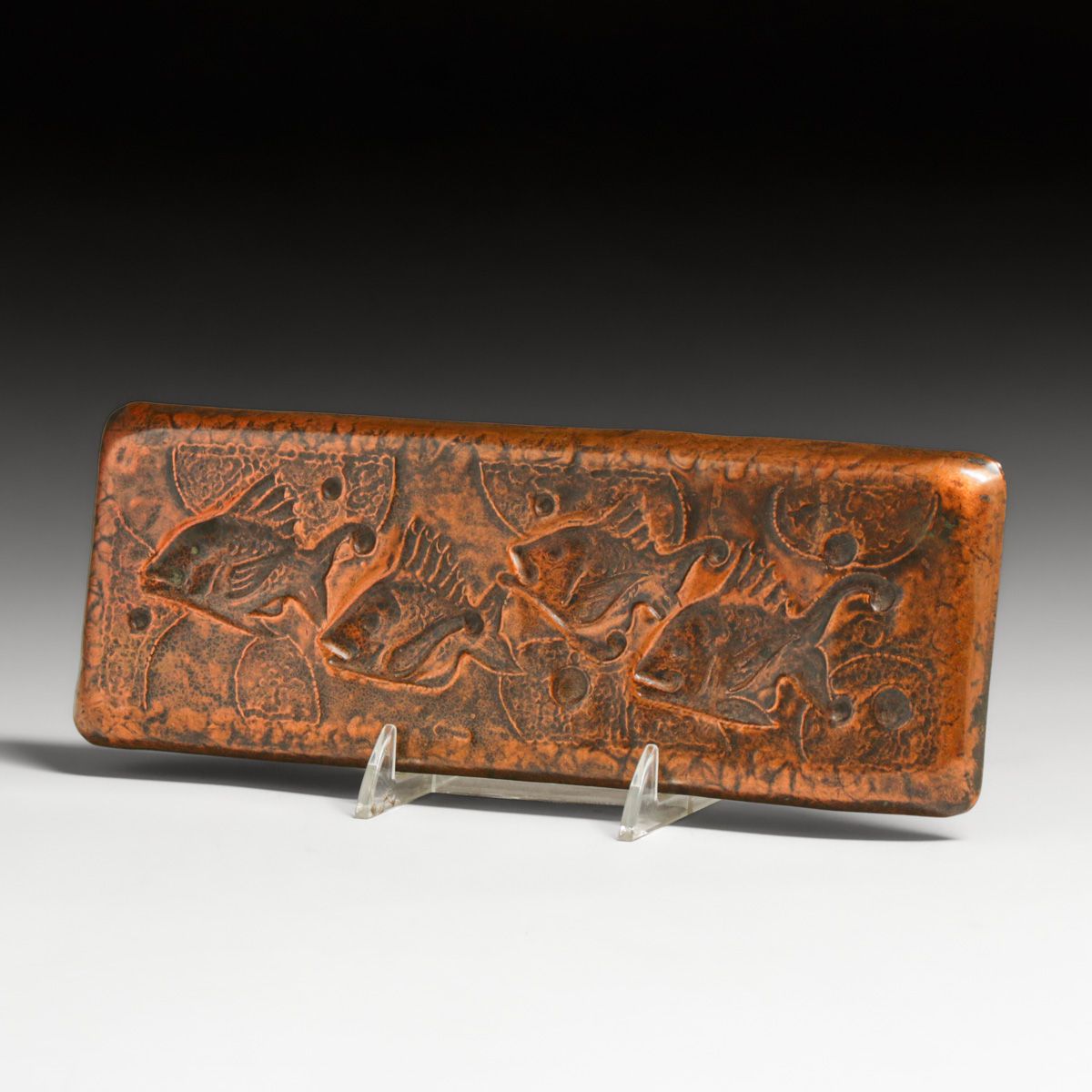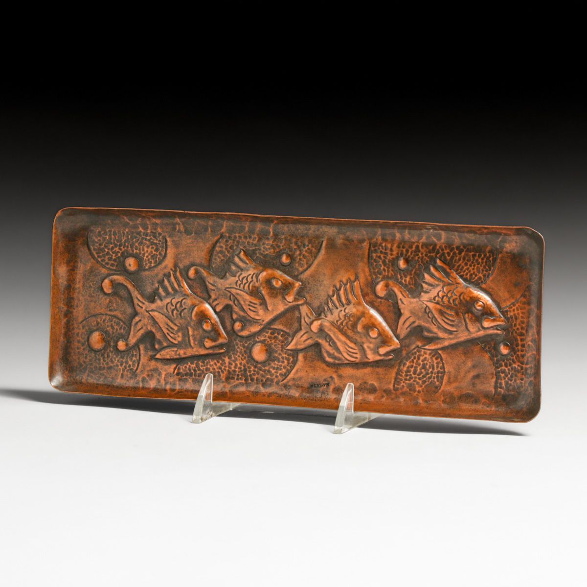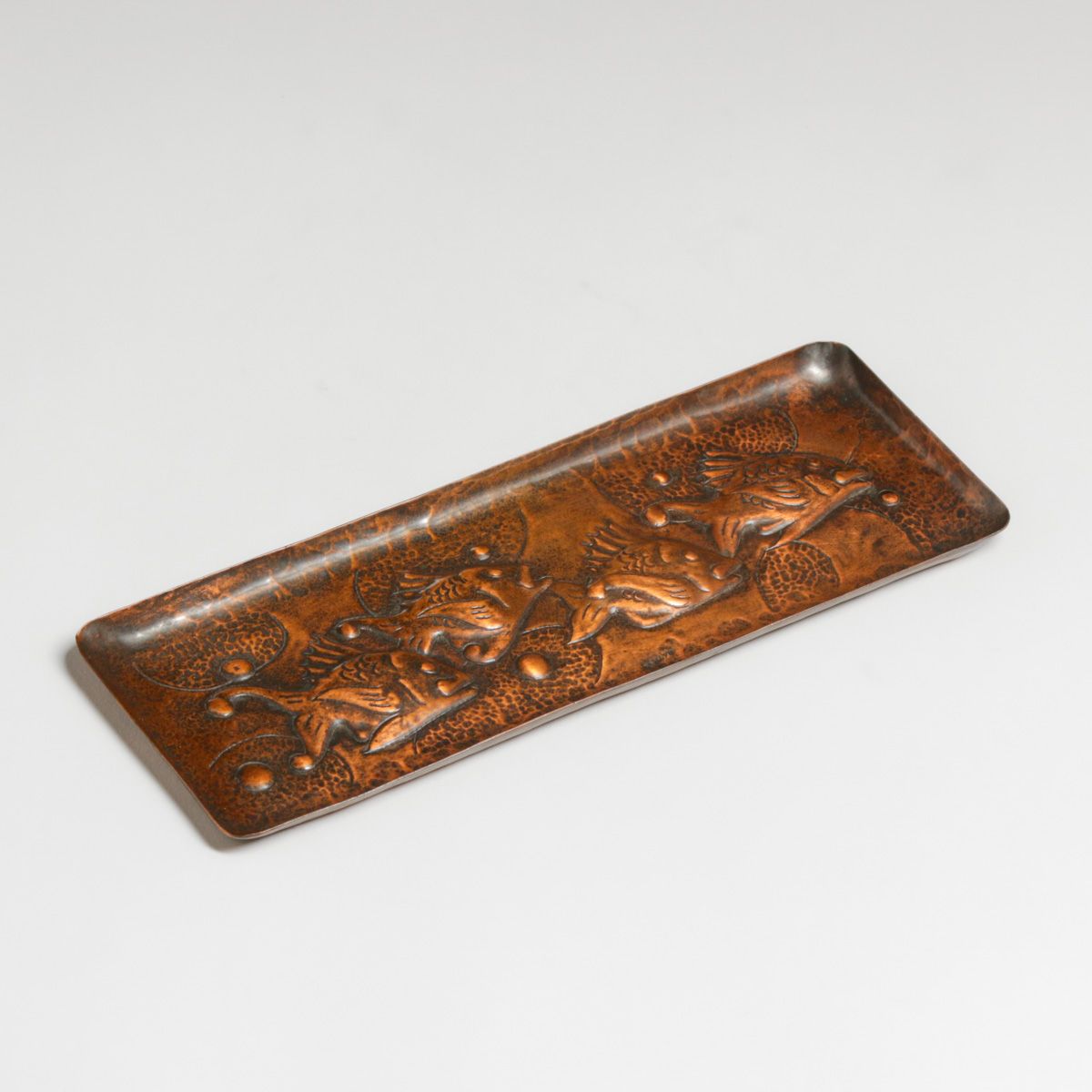 - Newlyn Hammered Copper Repousse Fish Pen Tray c1900s
