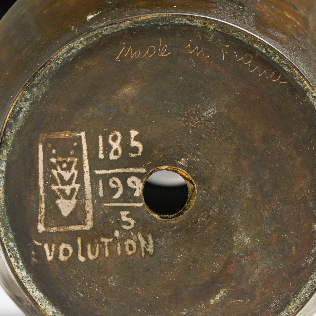 Paul-Louis Mergier - French Art Deco "Evolution" Series Dinanderie Vase c1925-1930. Signed. Drilled, otherwise excellent original patina. 11.5"h x 5.5"d