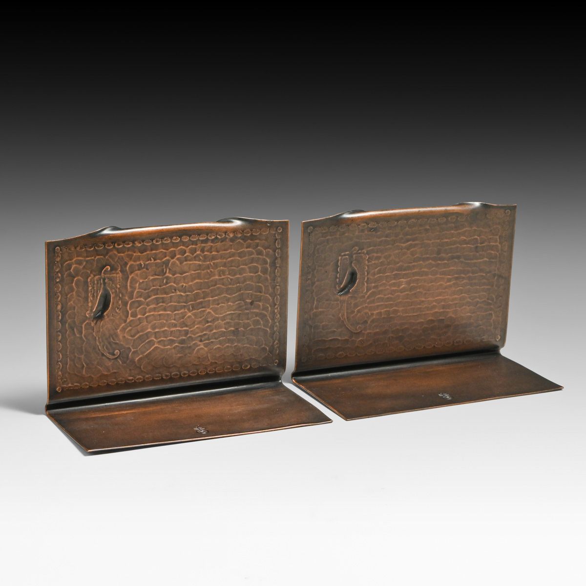 - Roycroft Hammered Copper Bird-of-Paradise Bookends c1920s