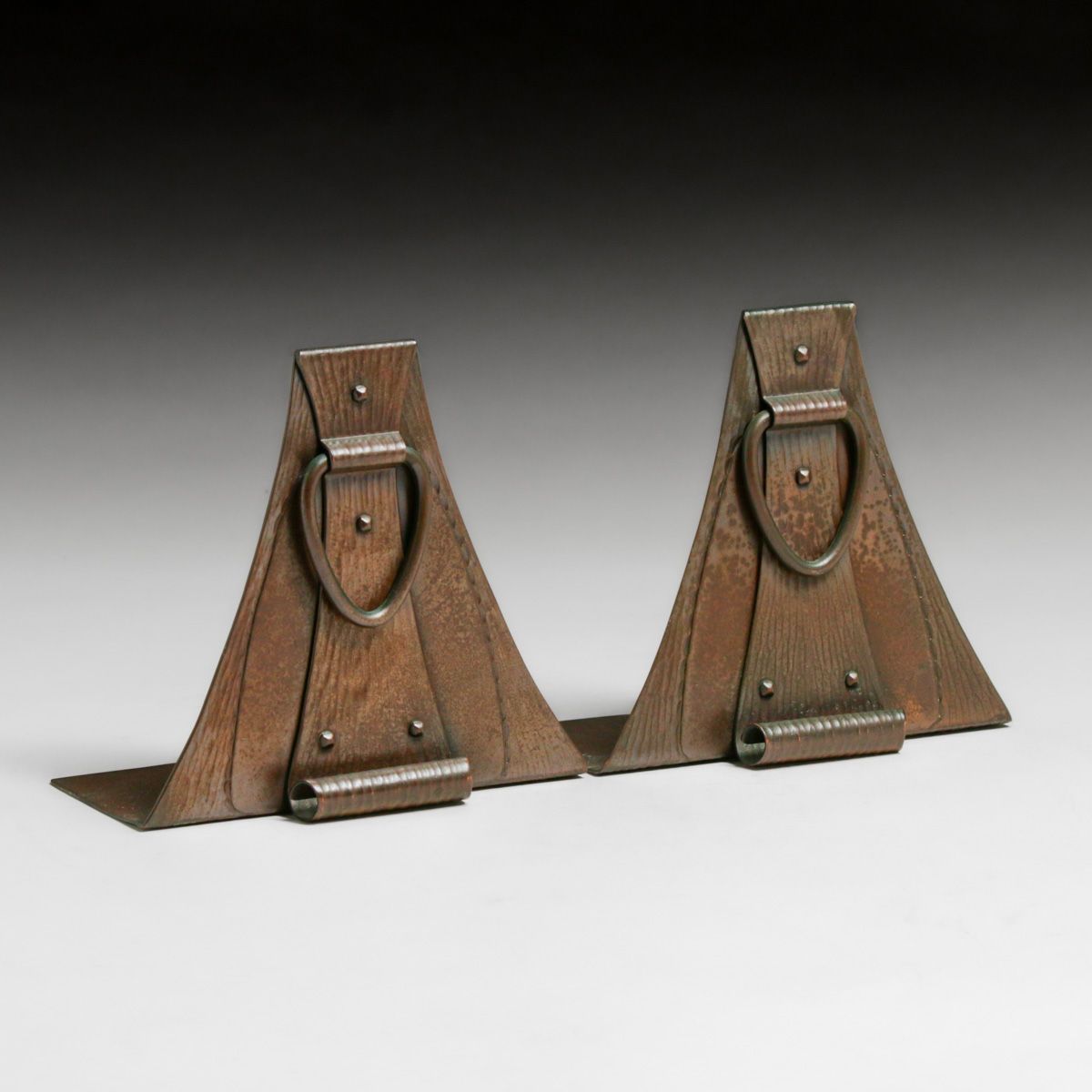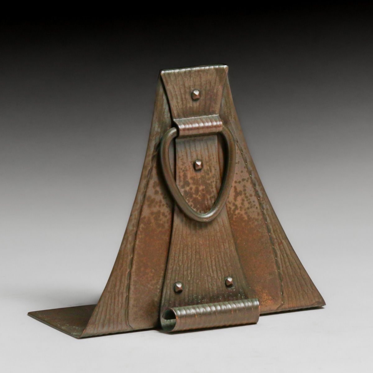 - Roycroft Hammered Copper Loop-Handle Bookends c1920s