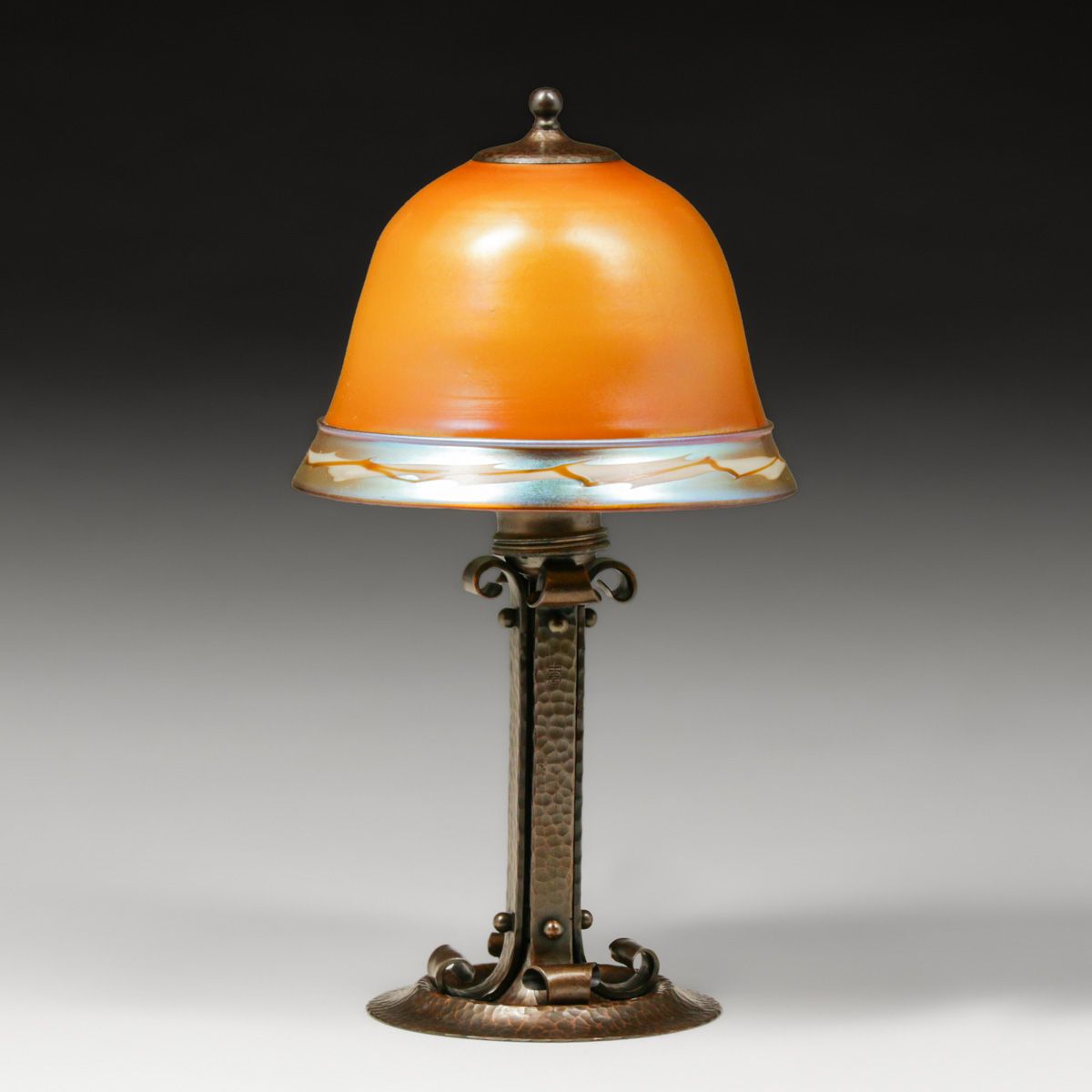 - Roycroft & Steuben Hammered Copper Lamp c1920