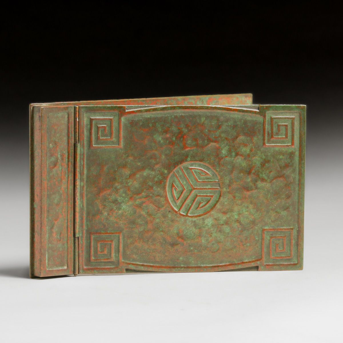- Tiffany Studios - New York #1120 Bronze Greek Key Notepad Holder c1910