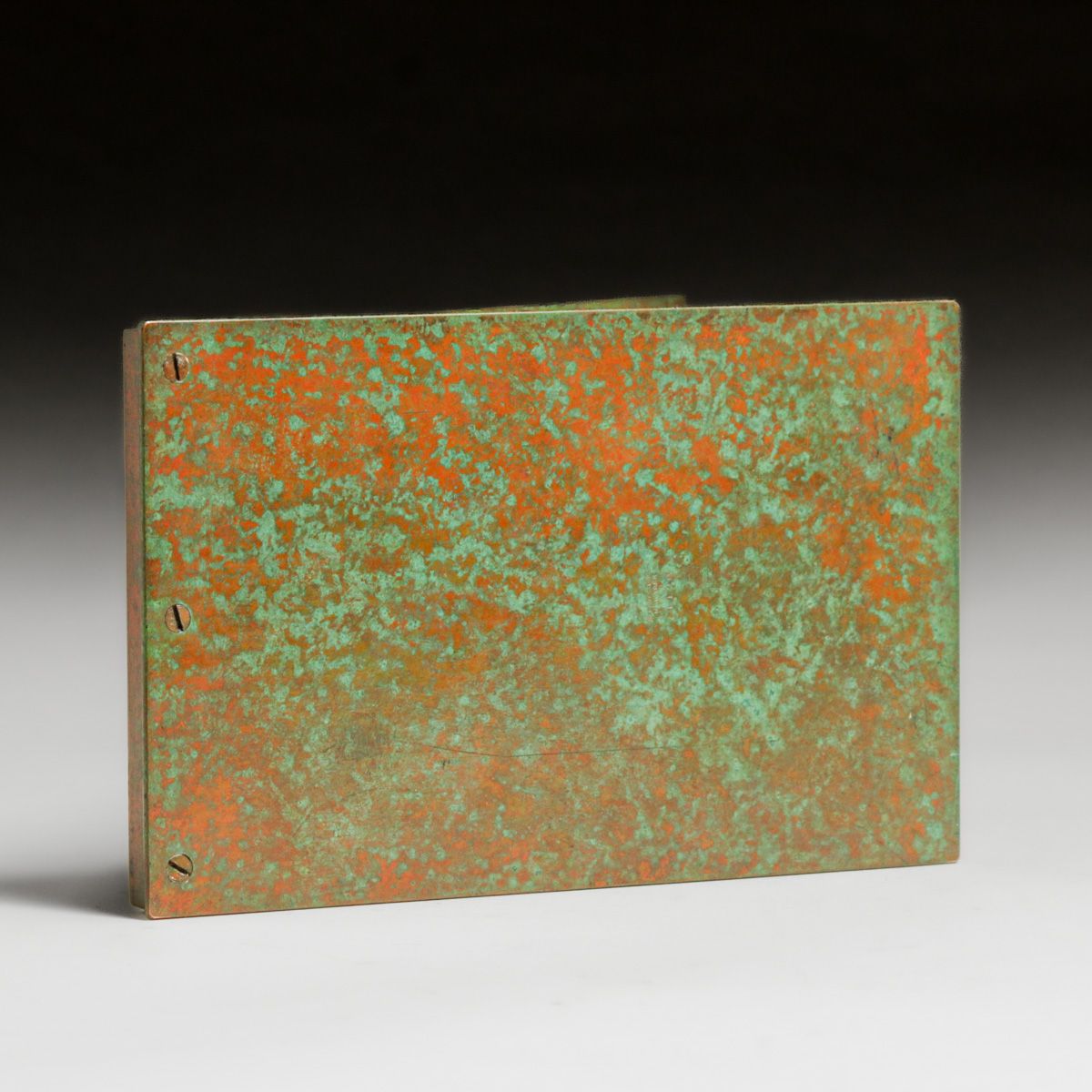 Tiffany Studios - New York #1120 Bronze Greek Key Notepad Holder c1910. Signed. Excellent original patina. 7.5" x 4.75"w
