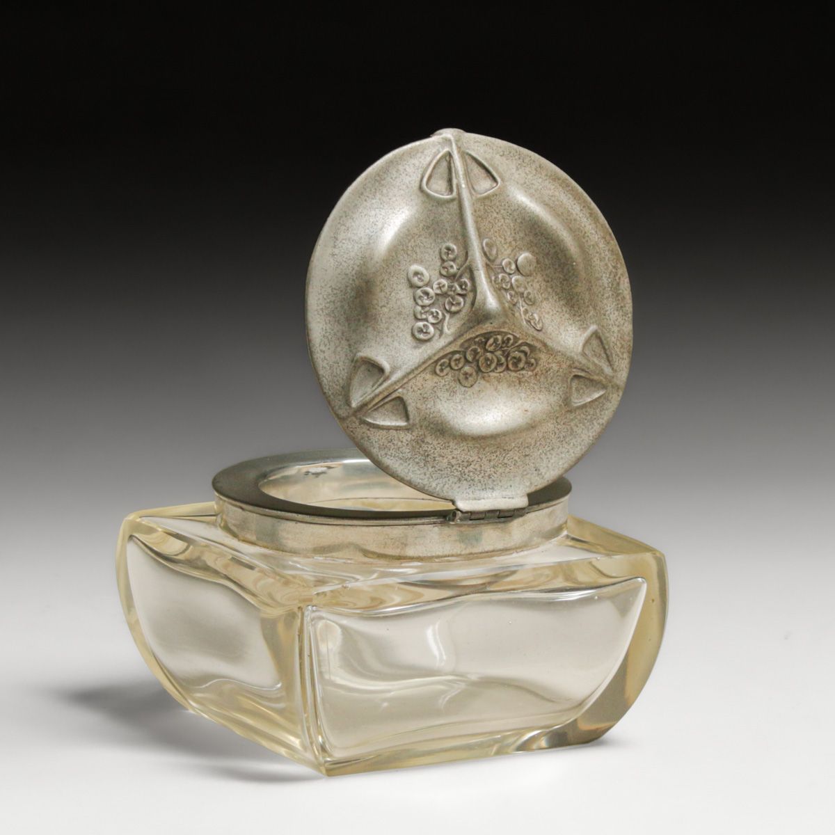 - William Hutton & Sons Ltd - Sheffield, England Art Nouveau Pewter & Glass Inkwell c1900s