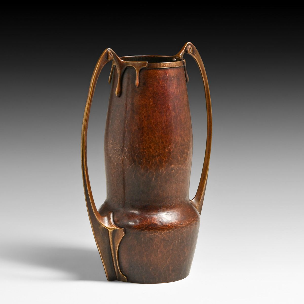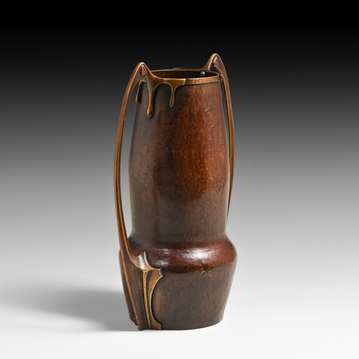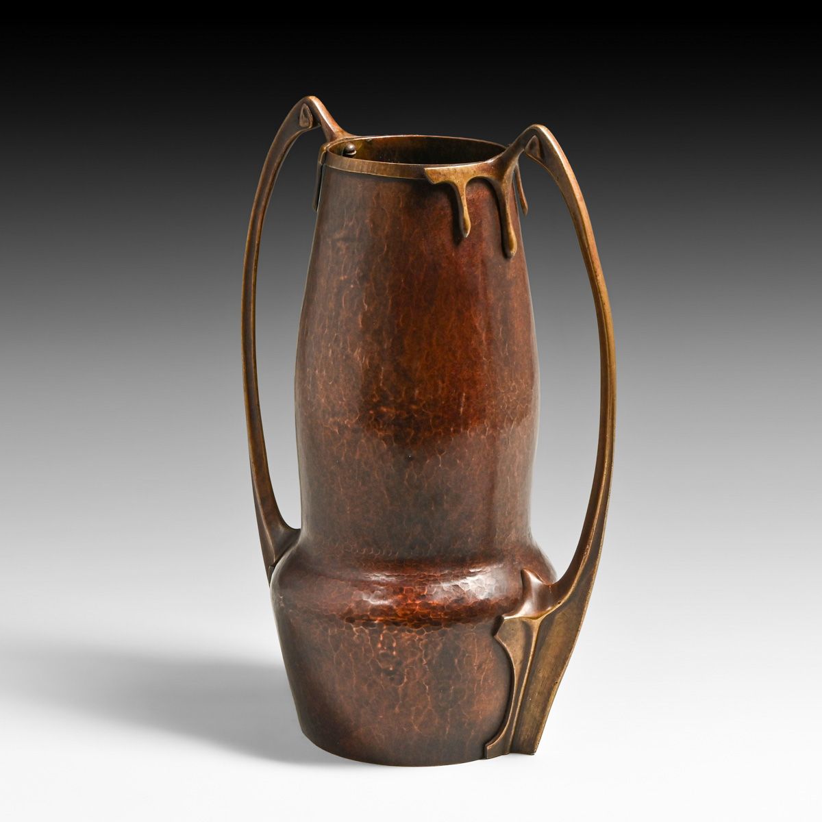 - WMF - German Art Nouveau Hammered Copper & Brass Two-Handled Vase c1905