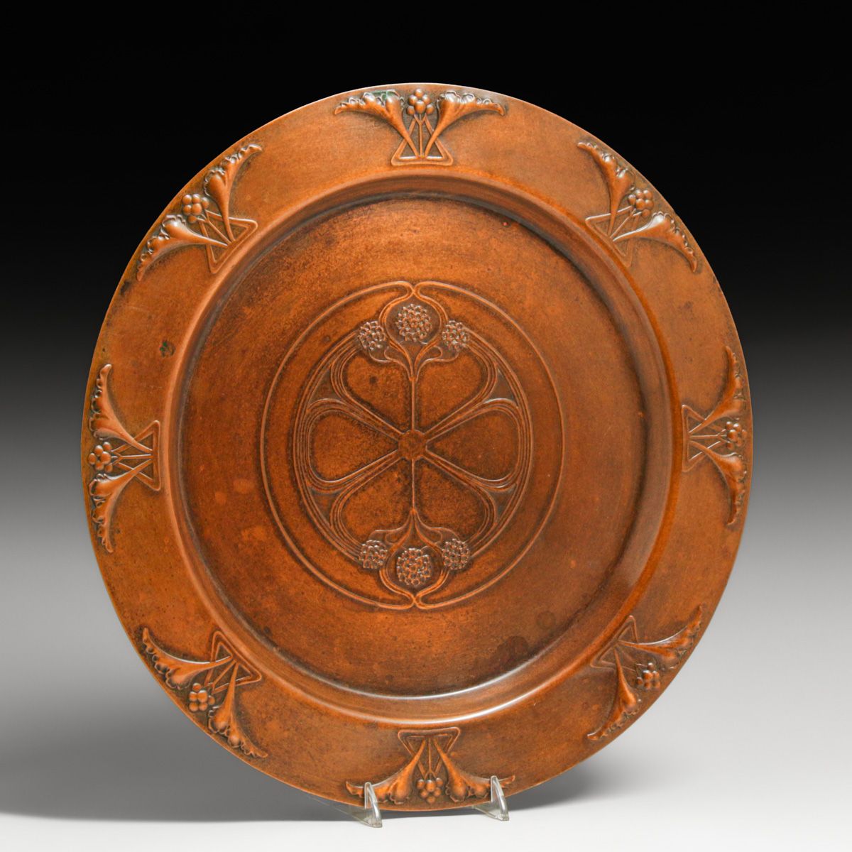 WMF - German Repousse Copper Tray c1905. Signed. Excellent new patina. 14"d