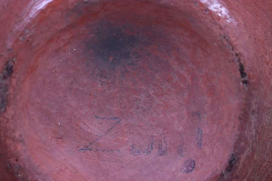 Zuni Pueblo unusual vase with Turkey motif c1920. Possibly Zia Pueblo marketed as Zuni. Signed "Zuni". A couple of very minor rim chips, otherwise excellent condition. 5"h x 6"w SOLD