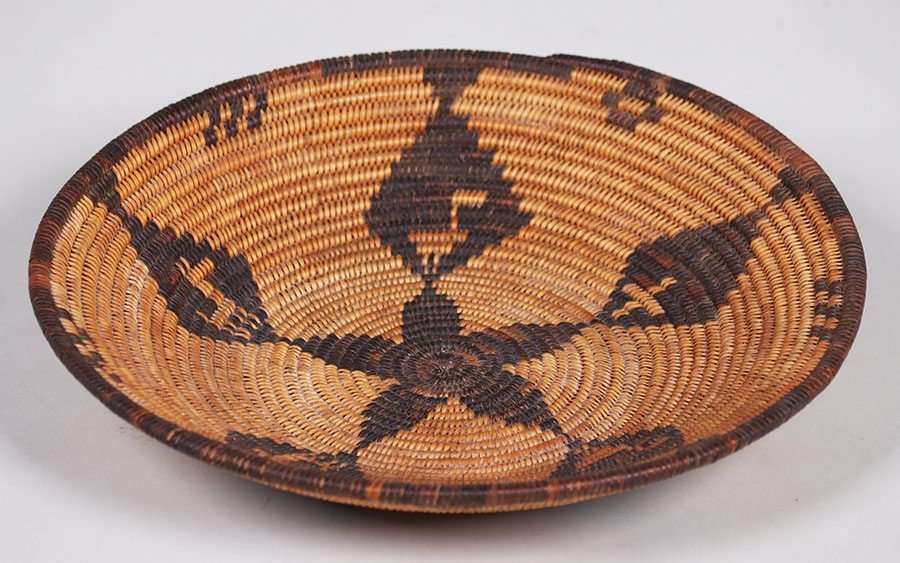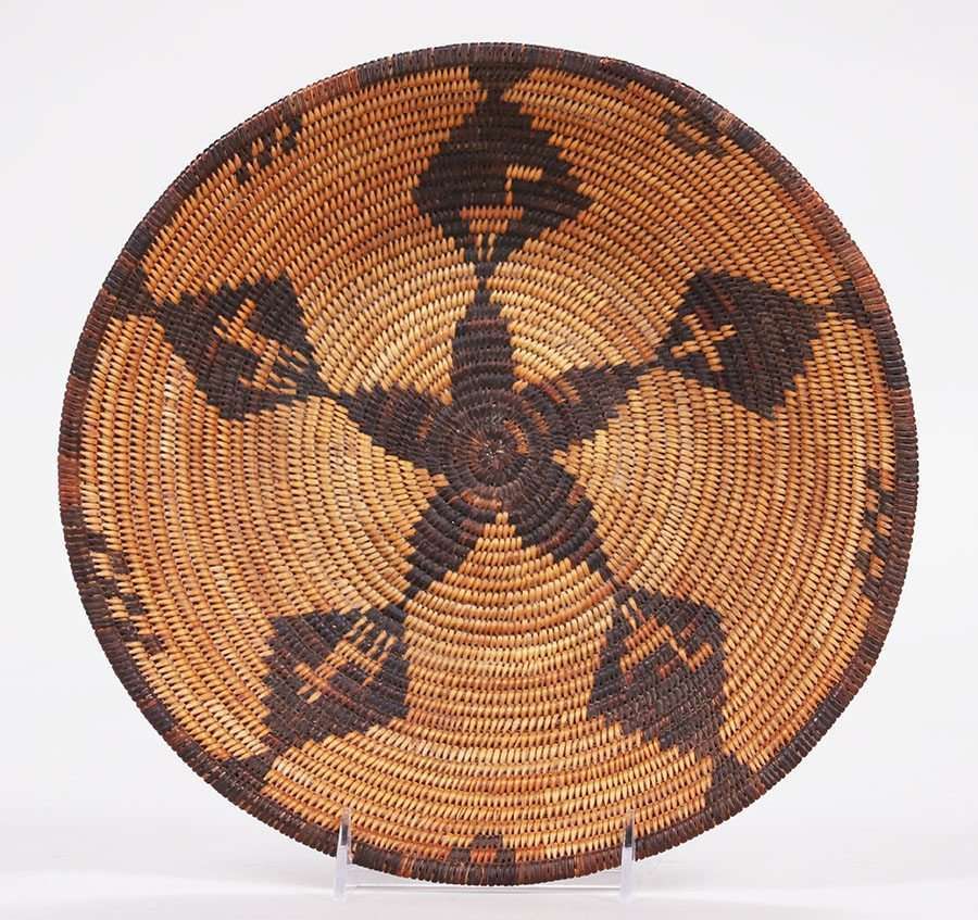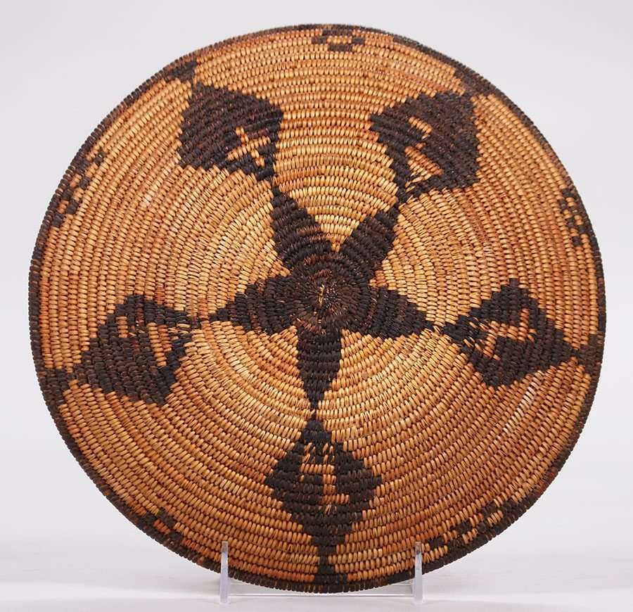 Native American basket tray - Apache c1910 with figural animals. Excellent condition. 11"d SOLD