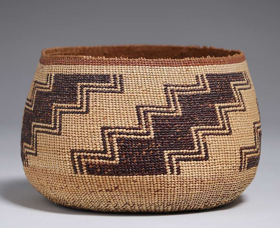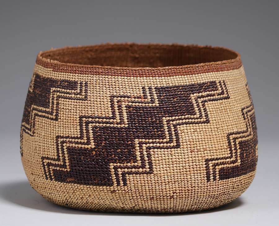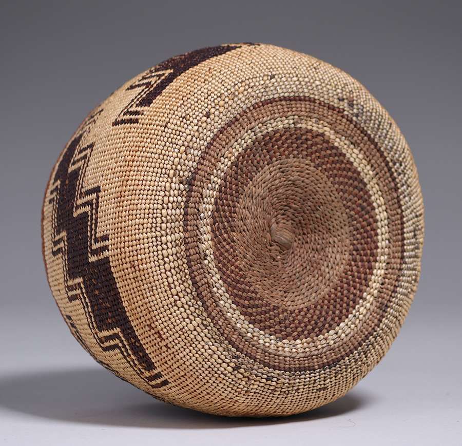 Native American Basket – Hupa Tribe Northern California c1910. Stitch loss on top edge otherwise, excellent condition. 6.75″d x 4.5″h SOLD