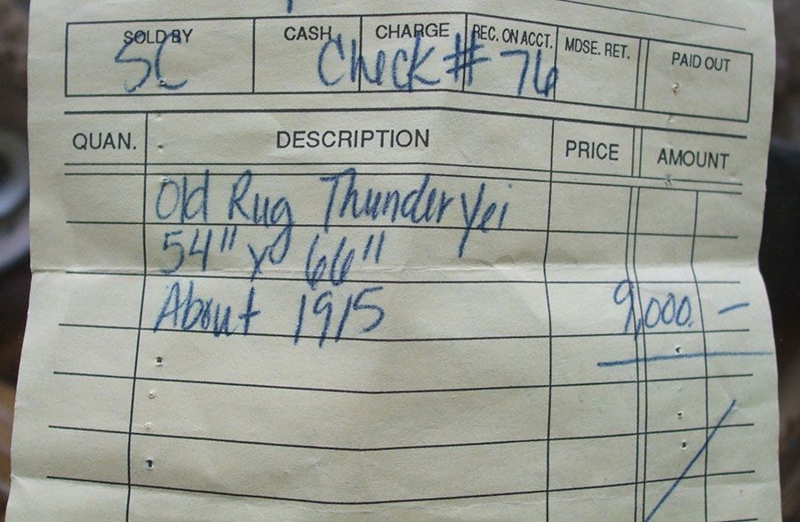 Hubbell Trading Post Navajo "Thunder Yei" Rug c1915. Comes with original Hubbell Trading Post Tag and sales receipt of $9000 from 30+ years ago. No color run. Near pristine condition. 66" x 54" SOLD