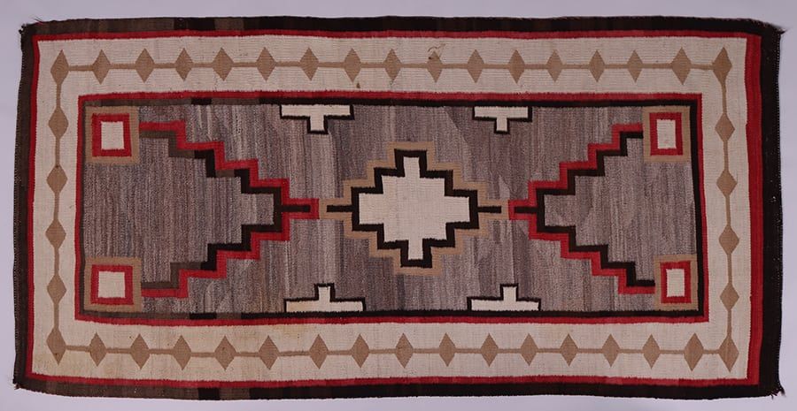 Navajo storm pattern rug c1910. Minor damage to corners otherwise excellent condition. 87.5"w x 43.5" SOLD