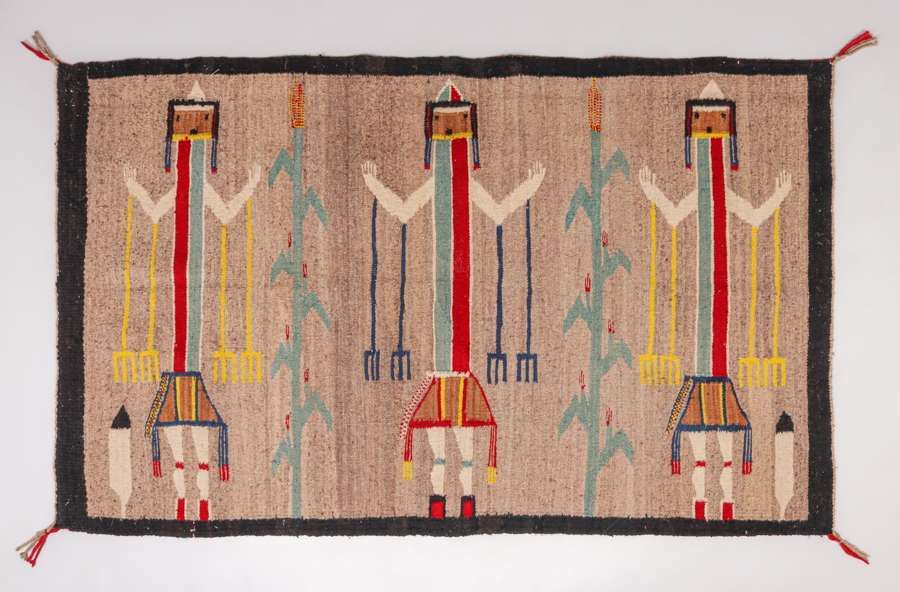 Navajo Yei Cornstack Rug c1940s. Excellent condition. 55"w x 33.75"h SOLD