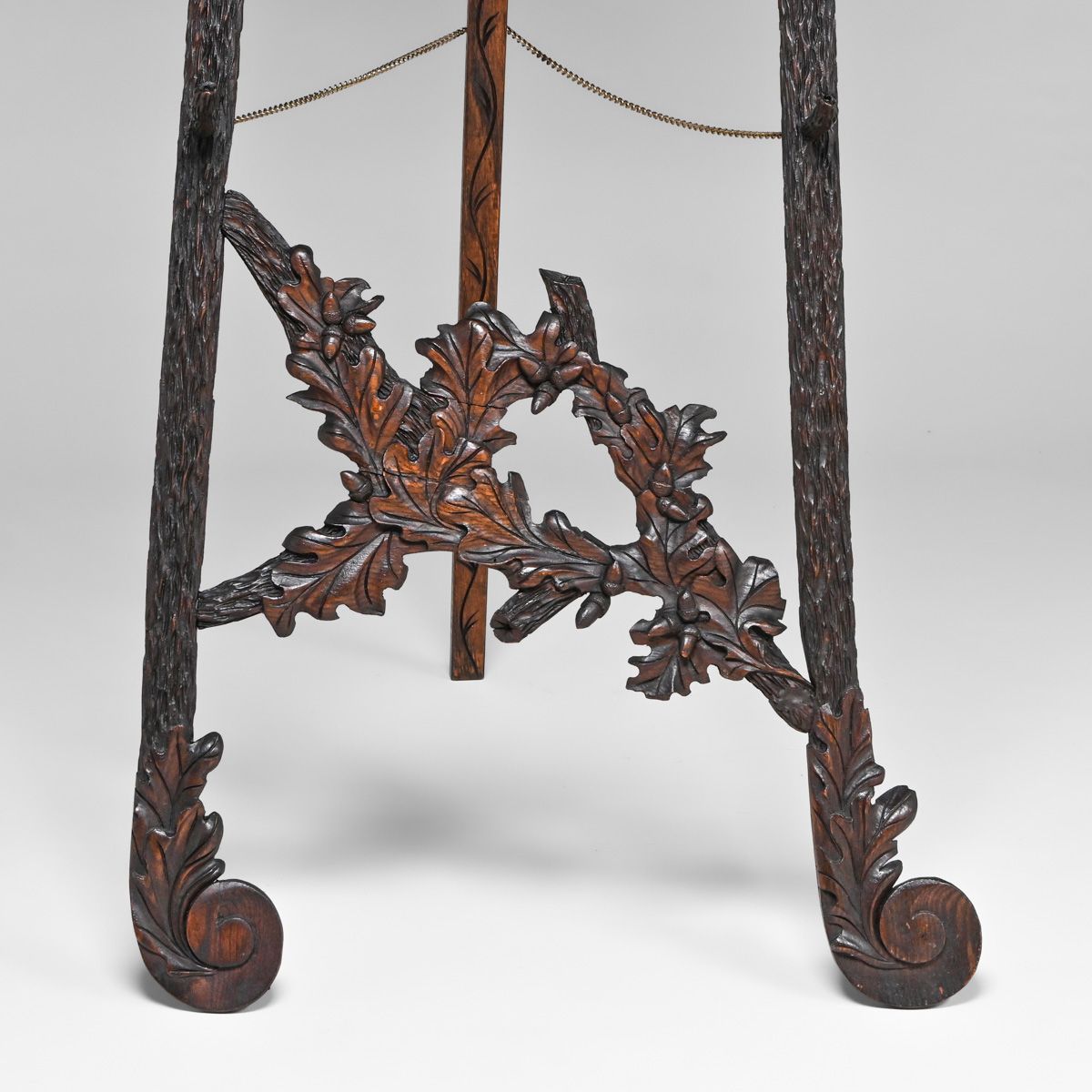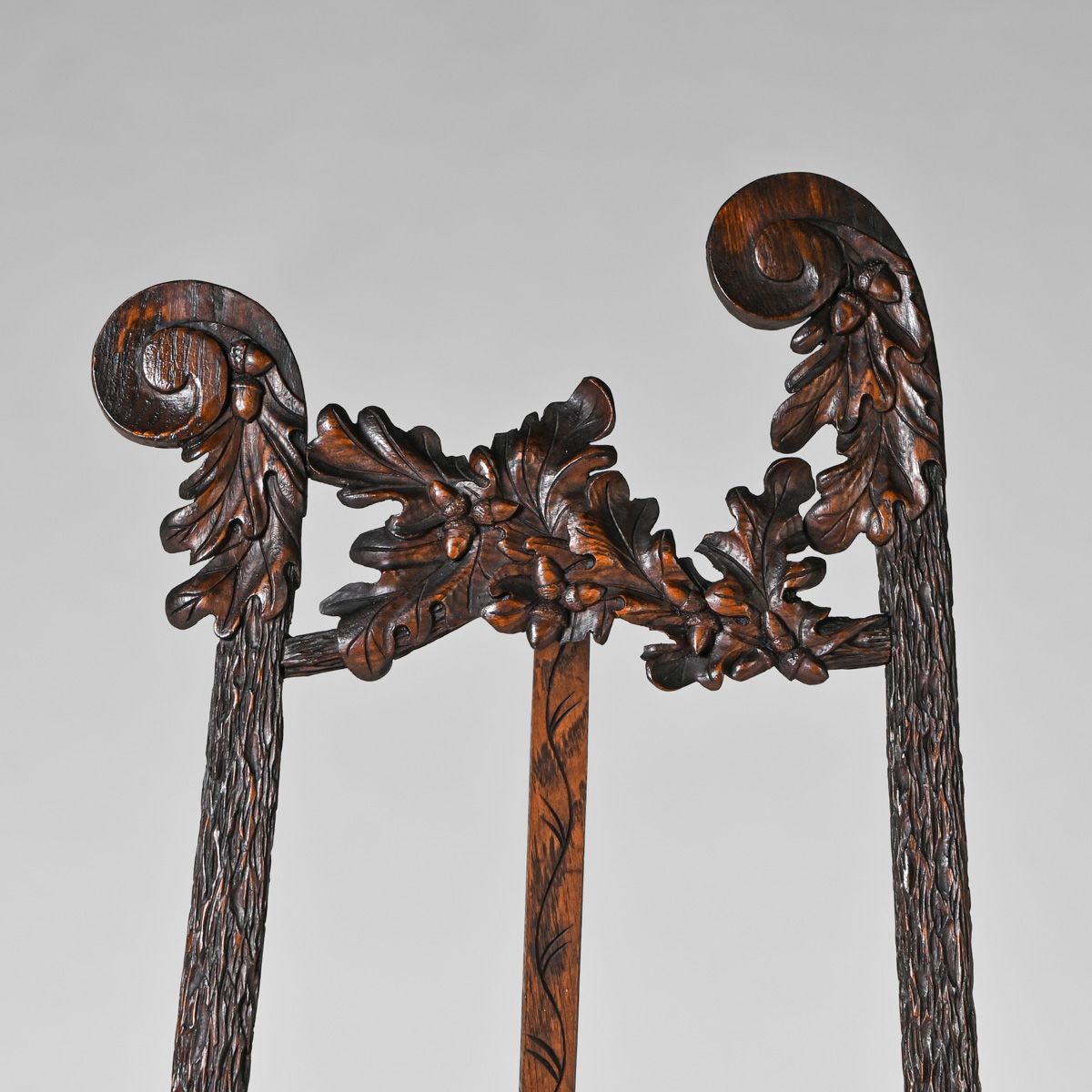 - Aesthetic Movement Oak Hand-Carved Acorn Easel c1890s